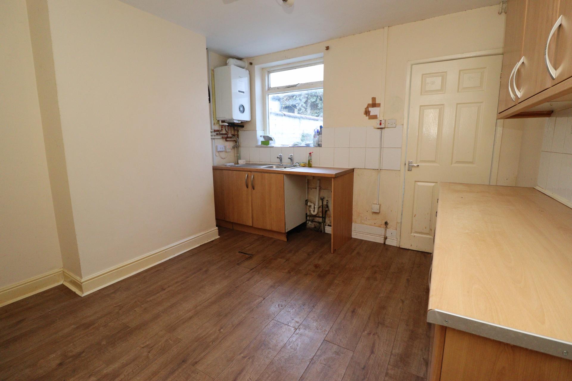 KITCHEN/DINER 11' 3" x 10' 11" (3.44m x 3.33m) Fitted with a range of wall and base units with work surfaces over, stainless steel sink with side drainer and hot and cold taps, spaces for washing machine and cooker, tiled splashbacks, laminate flooring, radiator, under stairs storage cupboard, window to the rear aspect and wall mounted gas fire central heating boiler.