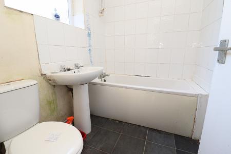 BATHROOM Fitted with a three piece suite comprising of panelled bath, close coupled WC and pedestal wash hand basin, chrome towel radiator, tiled splashbacks and window to the side aspect.
