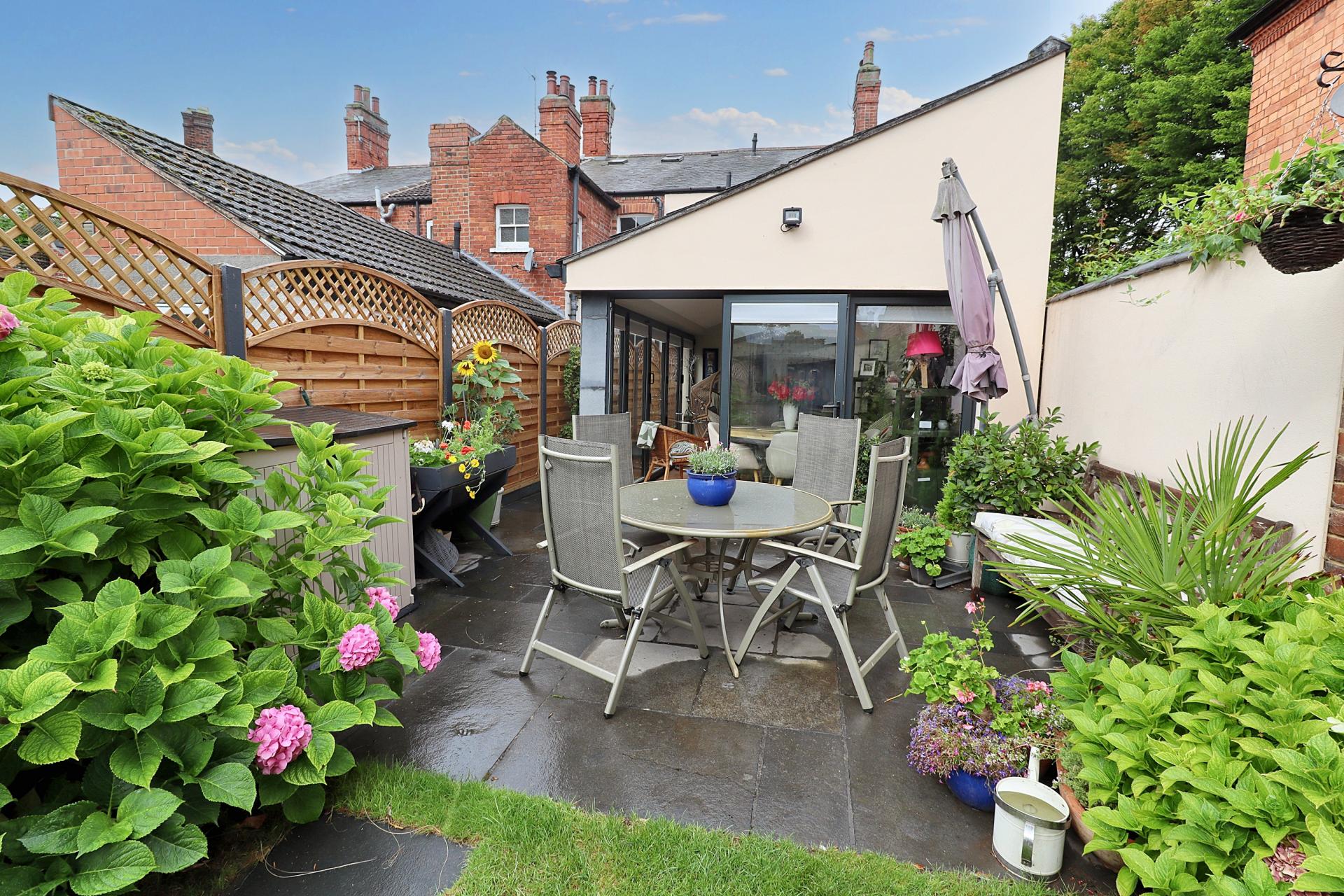 OUTSIDE To the front of the property there is a courtyard garden behind a low-level wall and a shared passageway leading to the rear garden. To the rear of the property there is a garden which is enclosed and laid mainly to lawn with a patio seating area, established shrubs and flowerbeds.