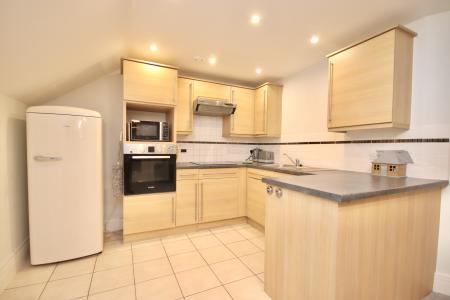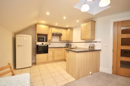 OPEN PLAN LIVING KITCHEN DINER 22' 1 (max)" x 17' 2 (max)" (6.73m x 5.23m) Kitchen area fitted with a modern range of wall and base units with work surfaces over, stainless steel sink with side drainer and mixer tap over, integrated dishwasher, space for fridge freezer, eye level electric oven, electric hob with extractor fan, tiled flooring, spotlights and skylight. The lounge area has double glazed window, electric fire set within a decorative fireplace and electric radiator.