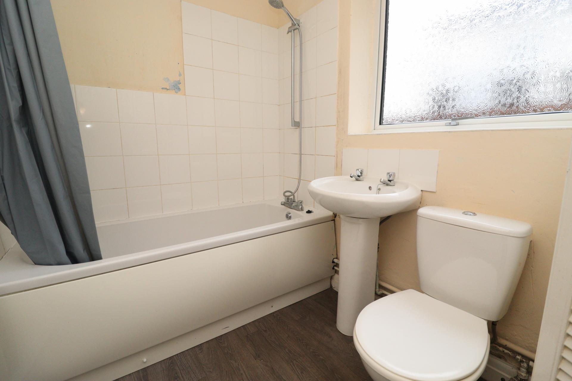BATHROOM With a three piece suite comprising of panelled bath with shower over, close coupled WC, pedestal wash hand basin, tiled splashbacks, radiator and double glazed window to the side aspect.