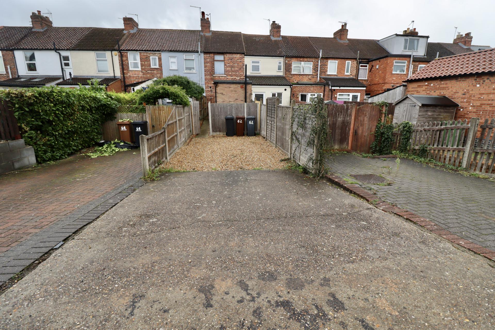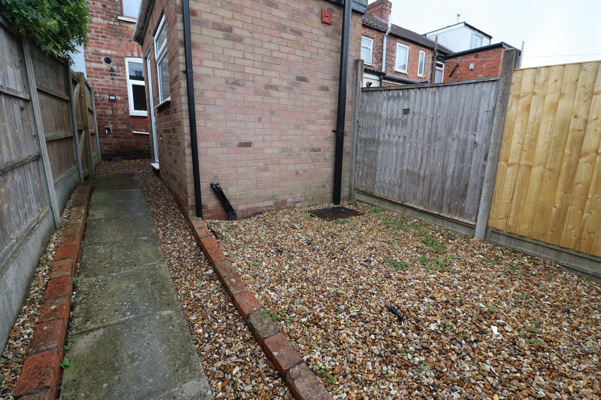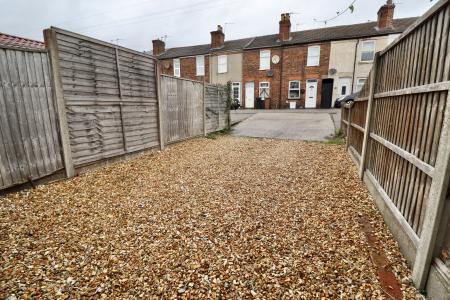 OUTSIDE To the rear of the property there is an enclosed gravelled rear garden. Beyond the garden is a driveway providing off street parking.