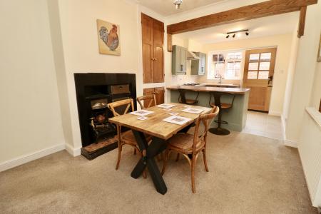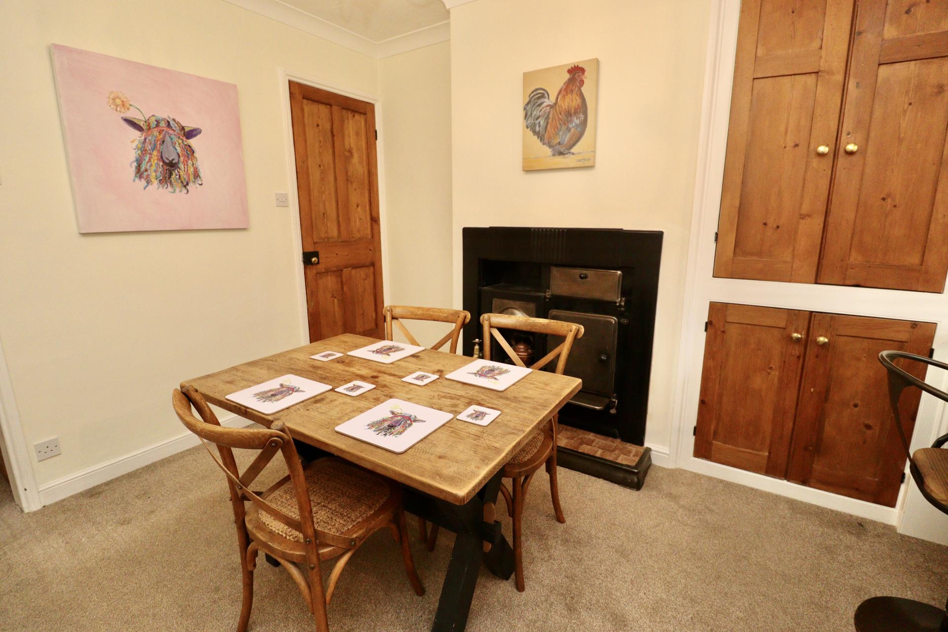 DINING ROOM 14' 3" x 10' 5" (4.35m x 3.18m) With door to staircase to first floor, under stairs storage cupboard, original stove, side storage cupboard and radiator.