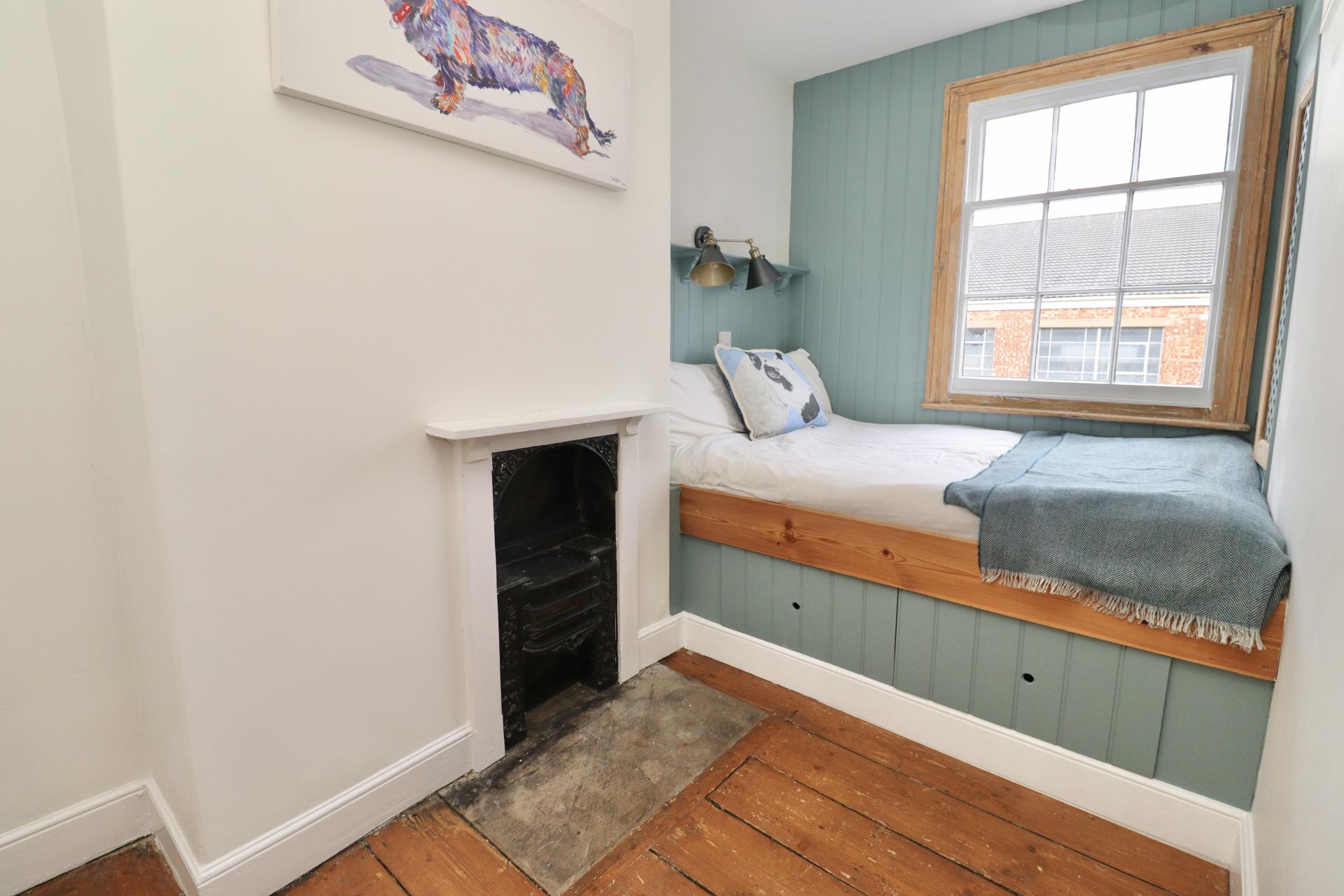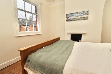 BEDROOM 2 11' 2" x 6' 1" (3.42m x 1.86m) With sash window to the rear aspect with views of Lincoln's historic Water Tower and Lincoln Cathedral, decorative cast iron fireplace, built in double bed with storage beneath, exposed floorboards, airing cupboard housing the gas fired central heating boiler and radiator.