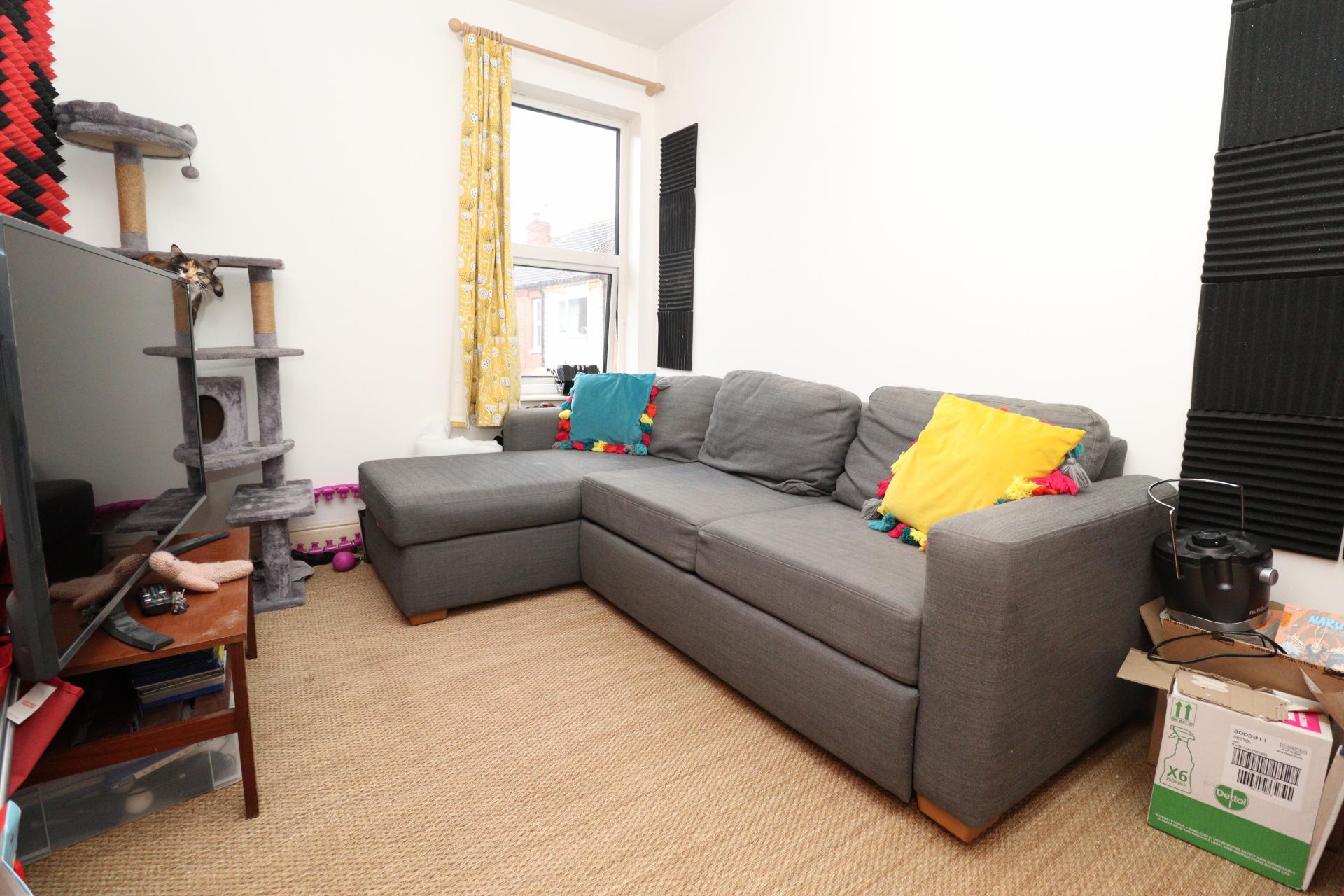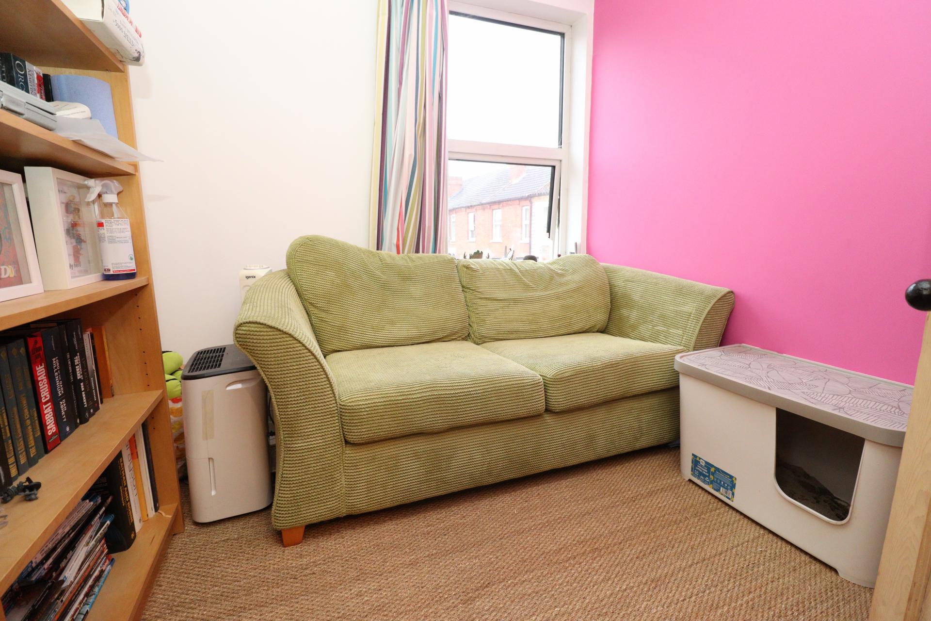 BEDROOM 2 With double glazed window to the front aspect, over stairs storage cupboard and radiator.