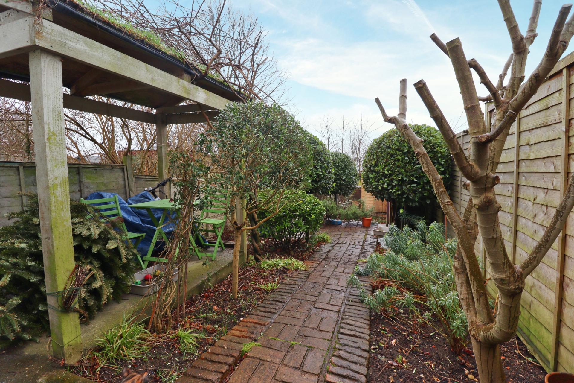 OUTSIDE To the rear of the property there is a beautiful landscaped garden with covered patio seating area, well stocked flowerbeds, mature shrubs, decorative trees and a shed. The property further benefits from residents permit parking.