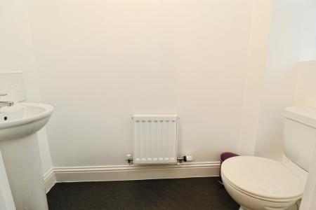 CLOAKROOM/WC With close coupled WC, pedestal wash hand basin, tiled splashbacks and double glazed window to the front aspect.