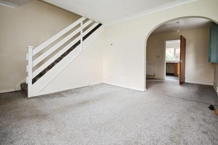 LOUNGE 11' 5" x 13' 9" (3.48m x 4.21m) Window to the front, archway leading into the dining room, radiator and stairs up to the first floor.