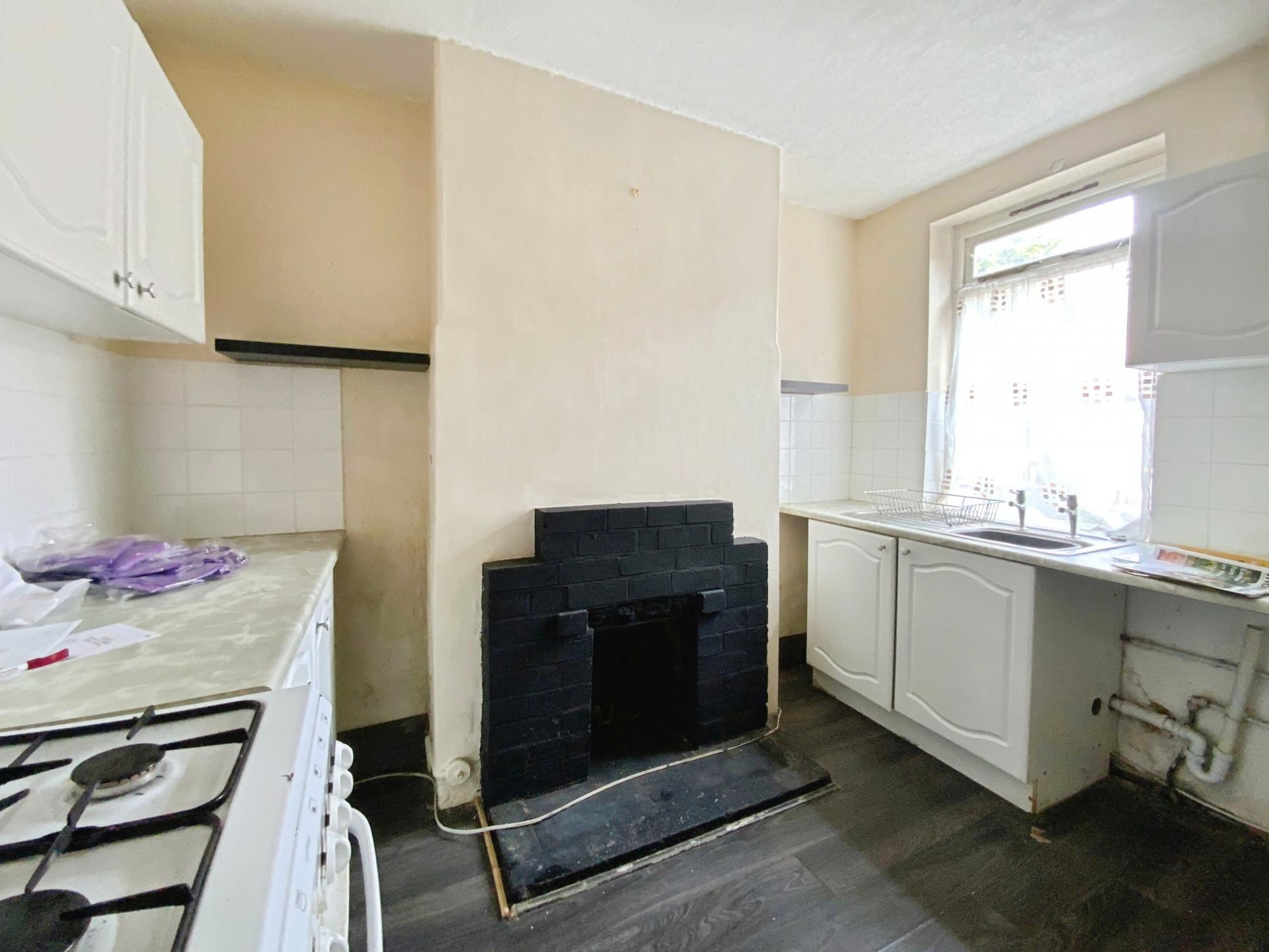 KITCHEN 9' 3" x 12' 2" (2.82m x 3.73m) Window to the rear fitted with a base units with work surfaces over, sink and drainer, spaces for washing machine and cooker, radiator, doors to understairs cupboard, stairs and rear entrance.