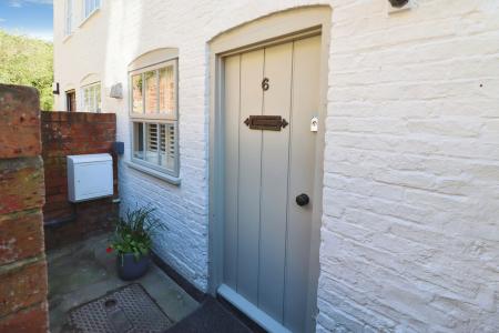 - Attractive front courtyard and low-maintenance rear garden with useful brick outbuilding