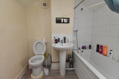 BATHROOM With UPVC window to the front aspect, radiator and suite to comprise of bath with shower over, WC and wash hand basin.