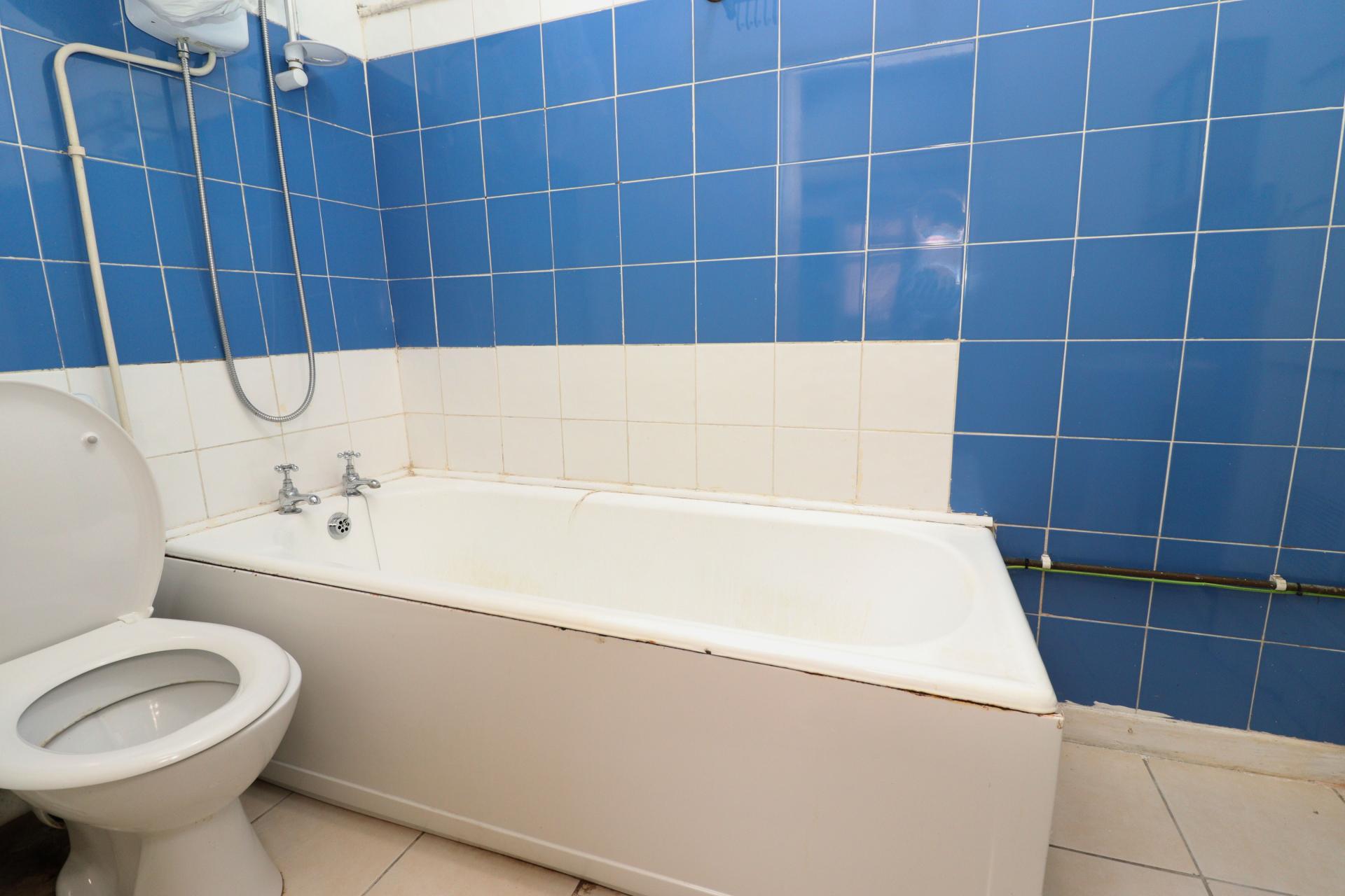BATHROOM Fitted with a three piece suite comprising of panelled bath with electric shower over, close coupled WC and pedestal wash hand basin, cupboard housing the gas fired central heating boiler, tiled walls and flooring.
