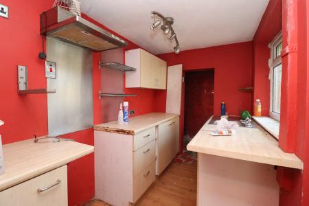 KITCHEN 9' 3" x 5' 11" (2.82m x 1.8m) Fitted with a range of wall and base units, stainless steel sink and drainer, space for a freestanding cooker, UPVC double glazed window and rear door.