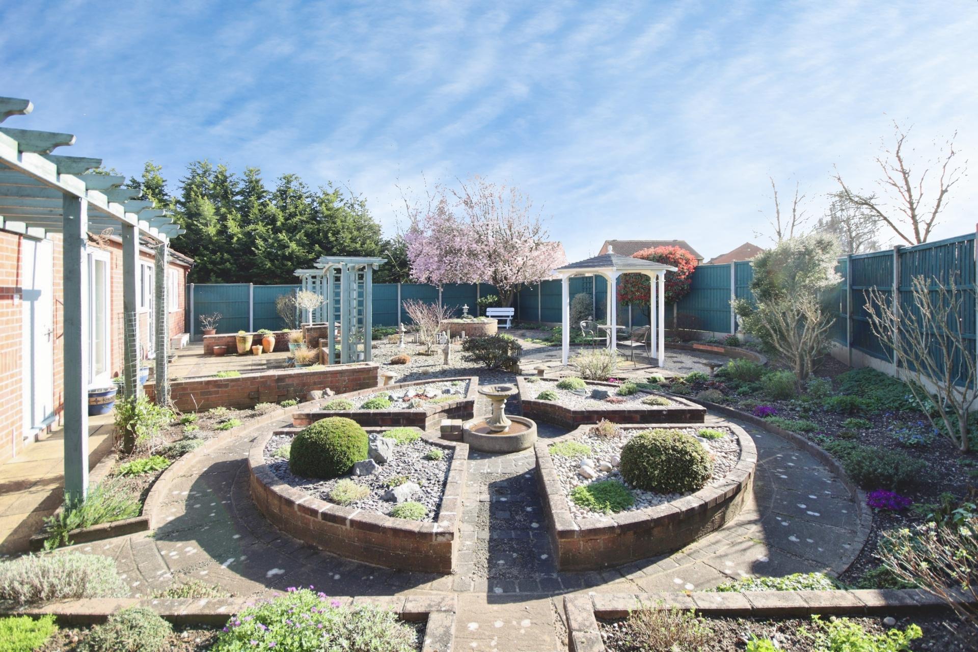 - Landscaped front and rear gardens with multiple seating areas