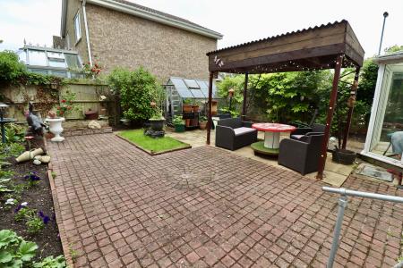 OUTSIDE The property sits on a generous corner plot with lawned gardens to the front and side, a block paved driveway providing off street parking and access to the single garage and an additional driveway to the side of the property. The garage has an up and over door to the front, light and power. To the rear of the property there is an enclosed landscaped garden with paved seating areas, covered seating area, mature shrubs and a greenhouse.