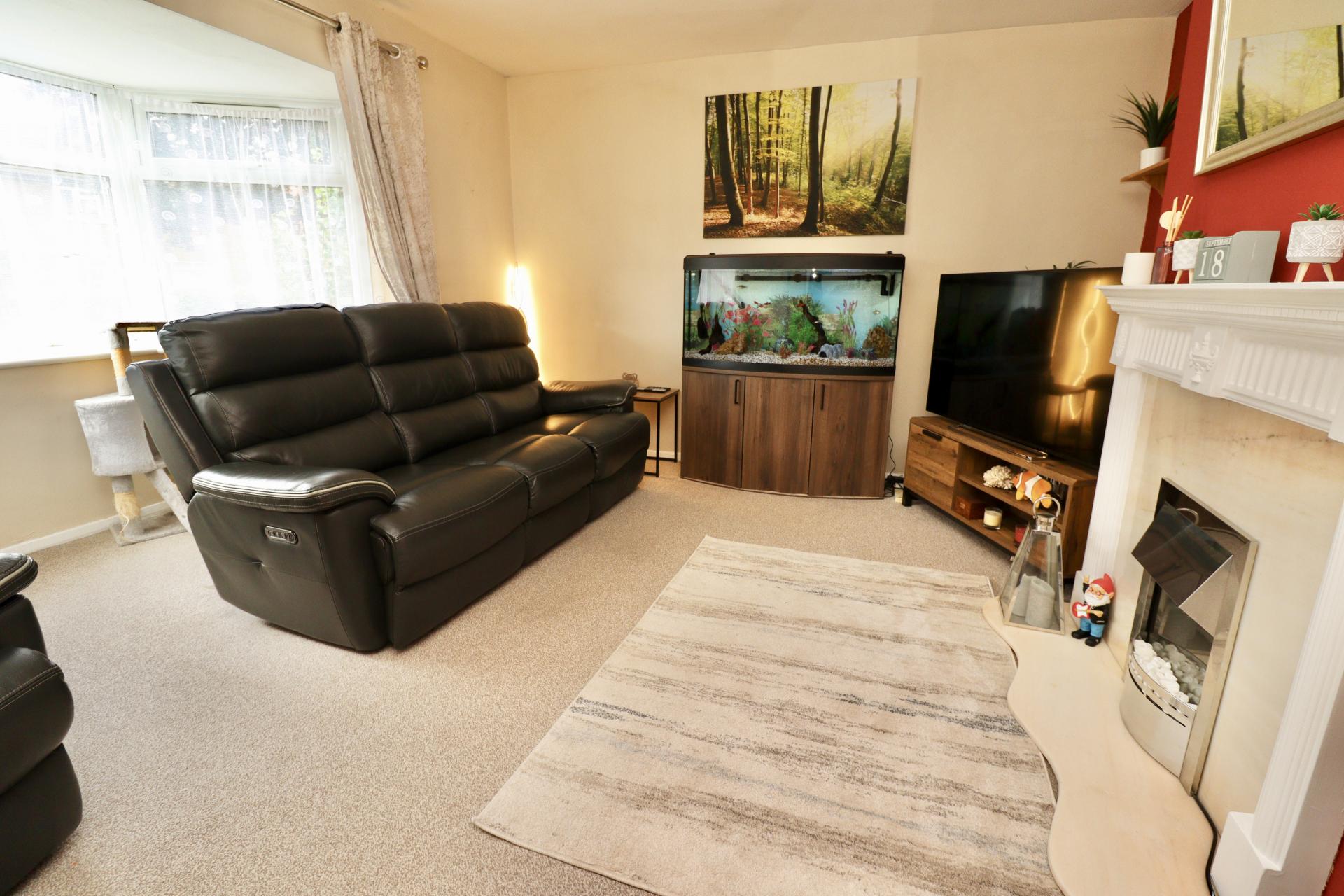 LOUNGE 14' 4" x 12' 3" (4.37m x 3.74m) With double glazed bay window to the front aspect, electric fire set within a feature fireplace and radiator.