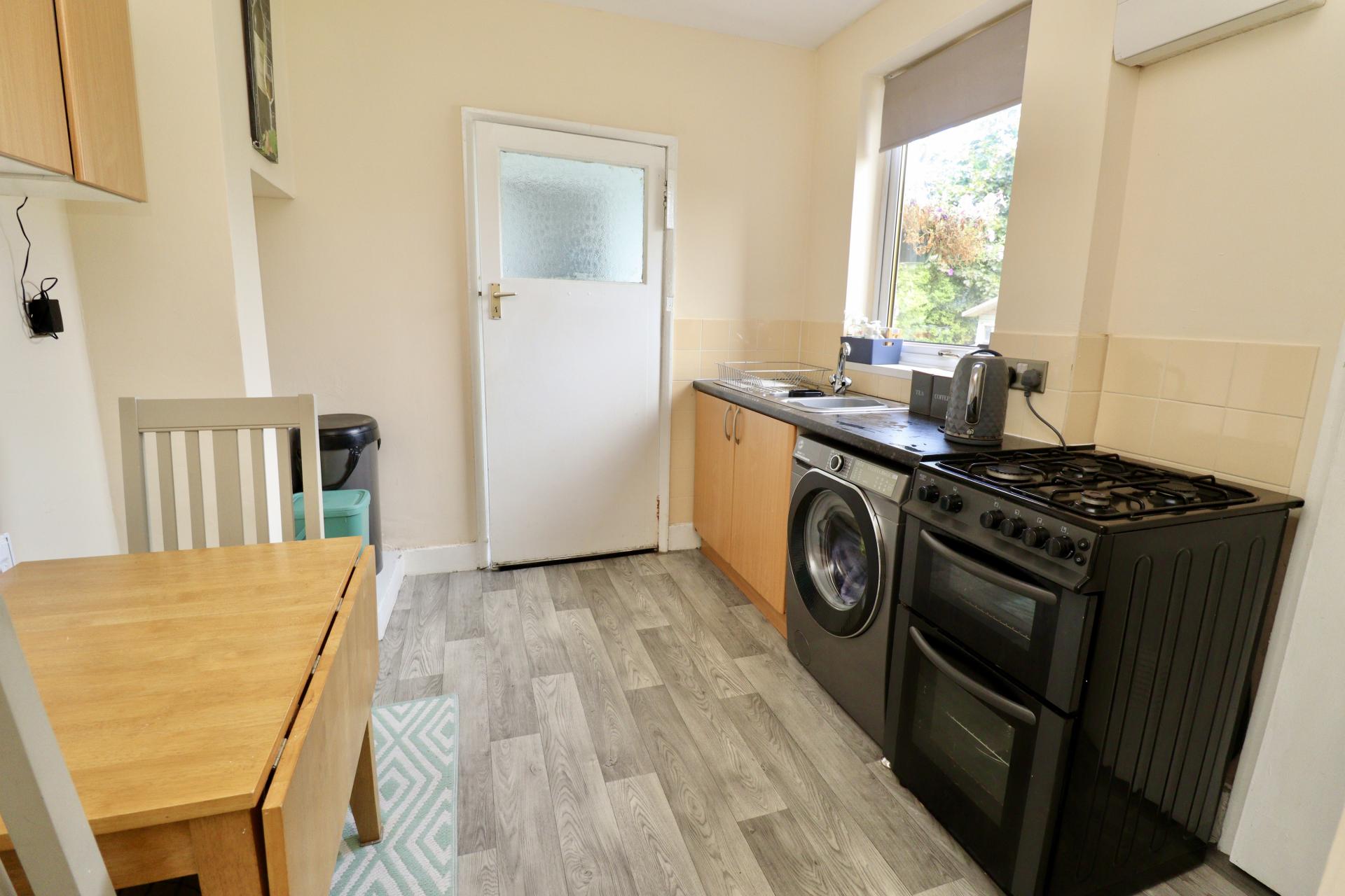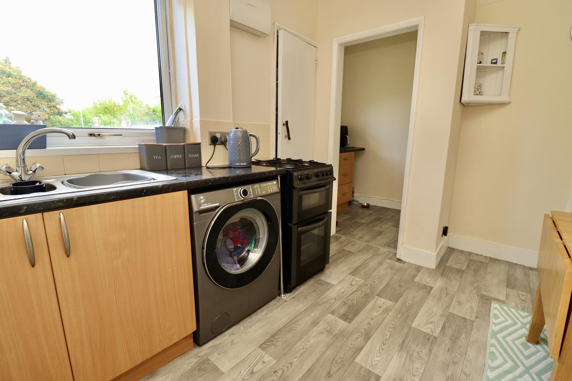 KITCHEN 12' 2" x 8' 9" (3.72m x 2.68m) Fitted with a range of wall and base units with work surfaces over, stainless steel 1 1/2 sink with side drainer and mixer tap over, spaces for cooker and washing machine, pantry cupboard, under stairs cupboard, tiled splashbacks, radiator and double glazed window to the rear aspect.