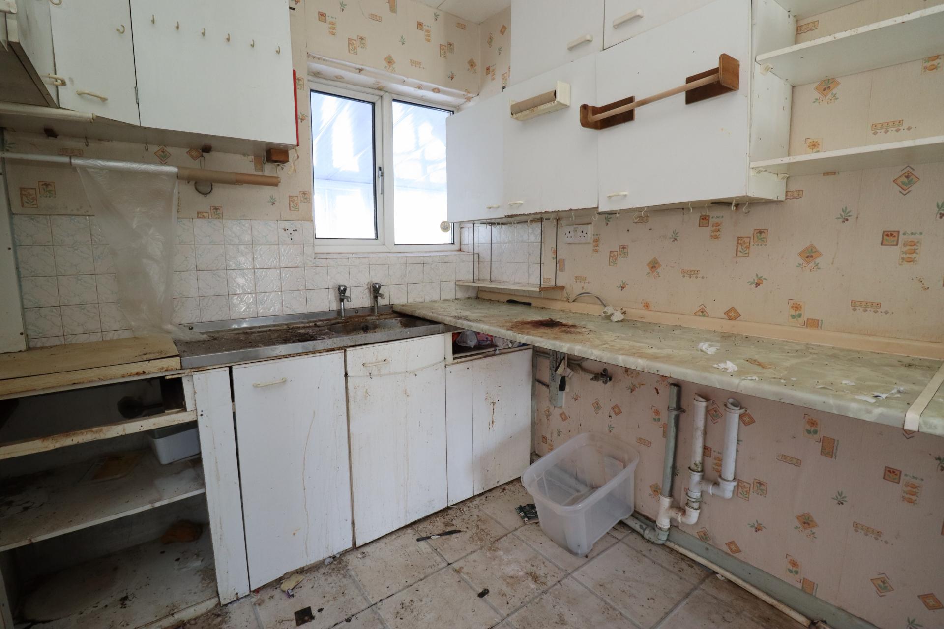 KITCHEN 10' 0" x 7' 1" (3.07m x 2.16m) Fitted with a range of wall and base units with work surfaces over, stainless steel sink with side drainer and hot and cold taps, spaces for appliances, tiled splashbacks, double glazed window to the rear aspect and door to the side.