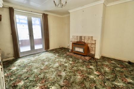 DINING ROOM 13' 6" x 11' 6" (4.13m x 3.51m) With double glazed French doors to the conservatory and gas fire in a decorative fire surround.
