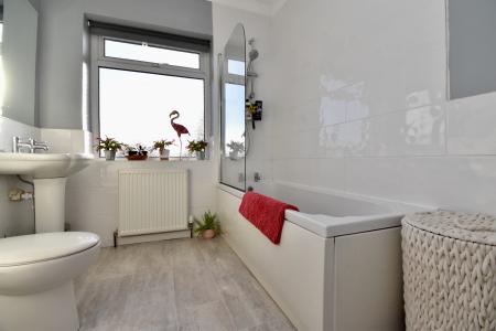 BATHROOM 7' 6" x 7' 2" (2.29m x 2.19m) With uPVC window to the rear, bath with shower over, WC, wash hand basin, towel radiator, partly tiled walls and cupboard housing the gas fired central heating boiler.