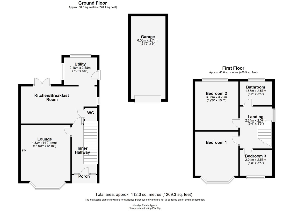 GARAGE 21' 5" x 8' 11" (6.53m x 2.74m) With up and over door to the front, power and lighting.