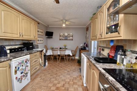 KITCHEN/BREAKFAST ROOM 9' 7" x 19' 7" (2.93m x 5.98m) With door to the WC, window the side aspect, doorway leading to the Utility Room, double uPVC doors to the rear garden, fitted with a range of wall, base units and drawers with work surfaces over, stainless steel sink unit and drainer with mixer tap, integral oven and four ring electric hob with extractor fan over, spaces for a dishwasher and fridge and radiator.