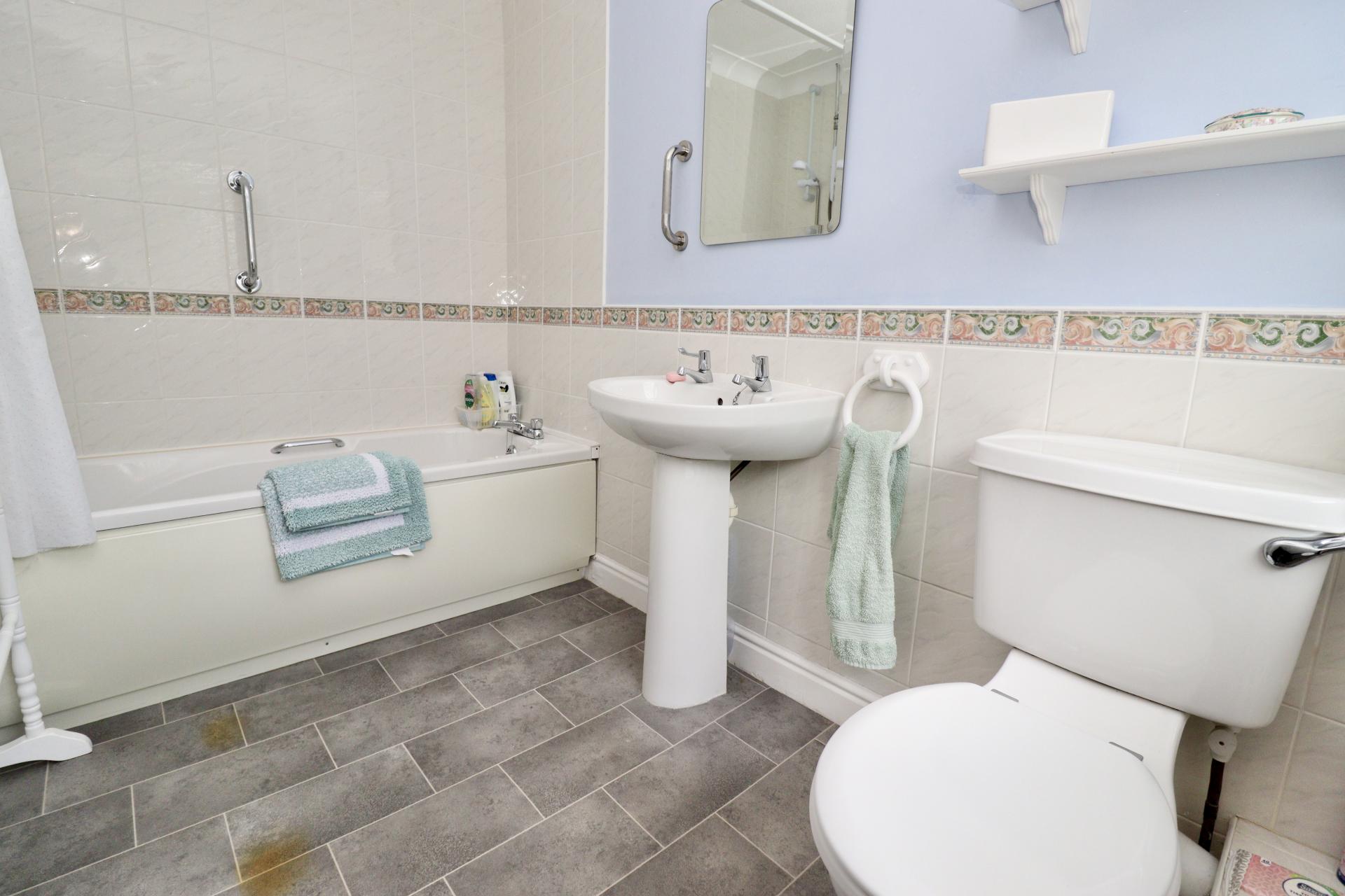 BATHROOM 9' 0" x 5' 7" (2.75m x 1.72m) Fitted with a three piece suite comprising of panelled bath with electric shower over, close coupled WC and pedestal wash hand basin, part tiled walls, radiator and double glazed window to the side aspect.