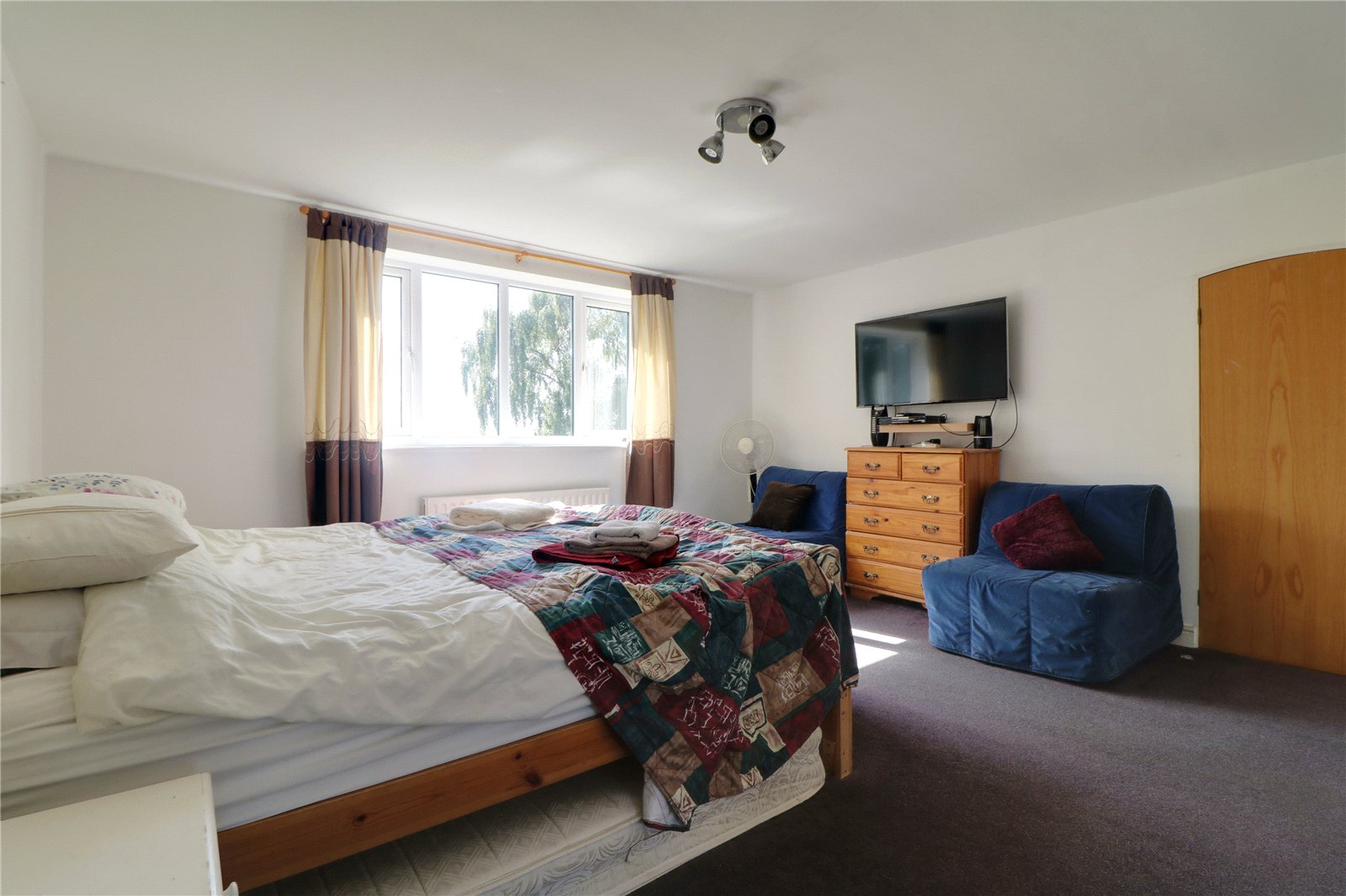This impressive family home offers spacious and exceptionally versatile accommodation, with scope for further enhancement. Light is a defining feature throughout, highlighted by the stunning full-height double-glazed window in the reception hall. The bright, triple-aspect open-plan living and dining area, together with the adjoining study, boasts a high vaulted ceiling and an eye-catching exposed brick chimney breast housing a contemporary recessed log burner.