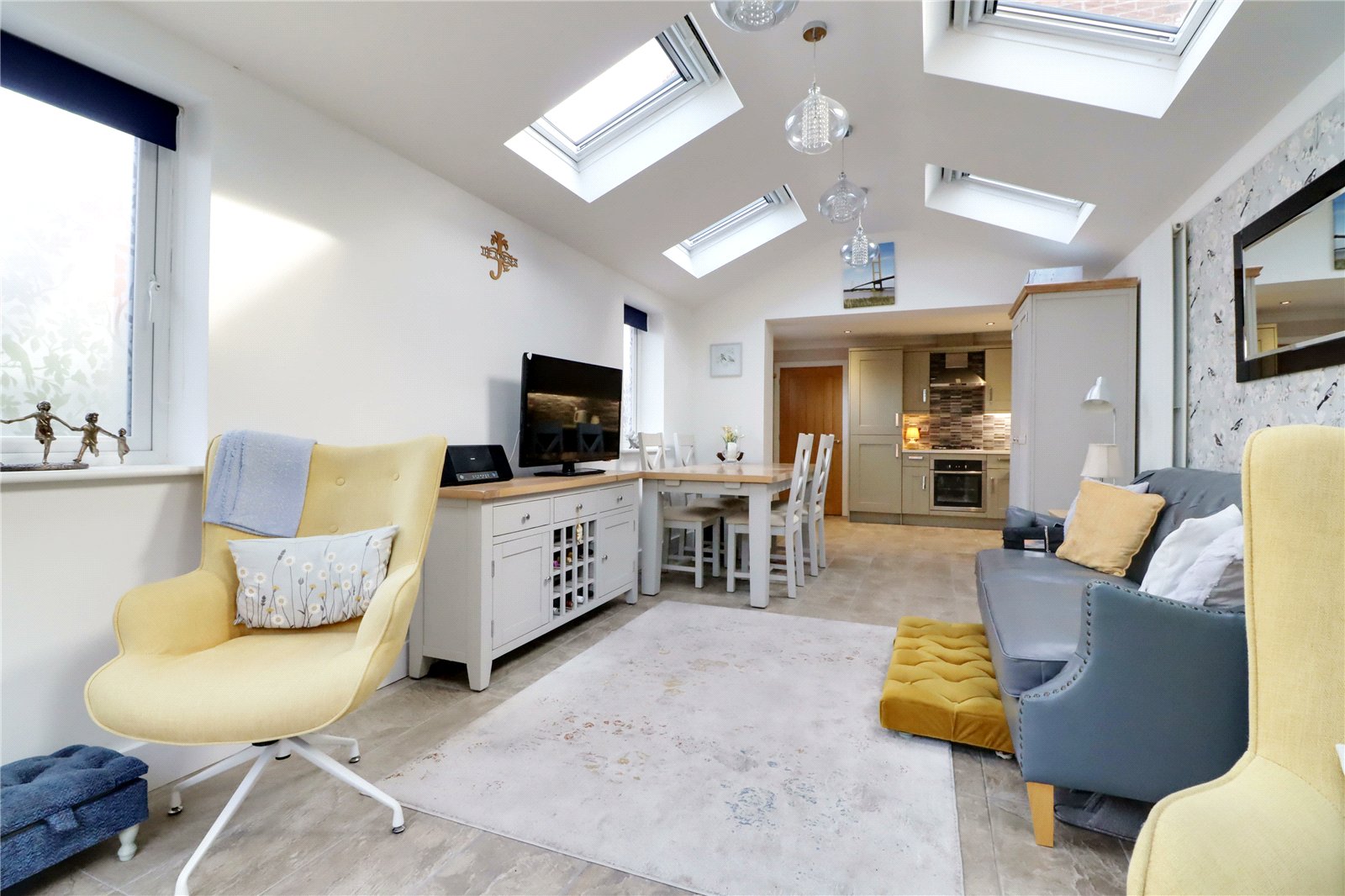 ** LARGELY EXTENDED TO THE REAR ** A superbly presented and largely extended modern end town house located within a highly desirable select development being within walking distance to the town centre. The beautifully presented accommodation comprises, side entrance hall, ground floor shower room, front living room, quality fitted kitchen leading to a large rear sitting/dining room. The first floor provides 2 bedrooms and a luxury shower room. Gardens to the front are lawned with a side driveway allowing parking for a number of vehicles with gated access to a private enclosed rear garden. Finished with full uPvc double glazing and a modern gas fired central heating system. Viewing comes highly recommended. View via our Barton office.
