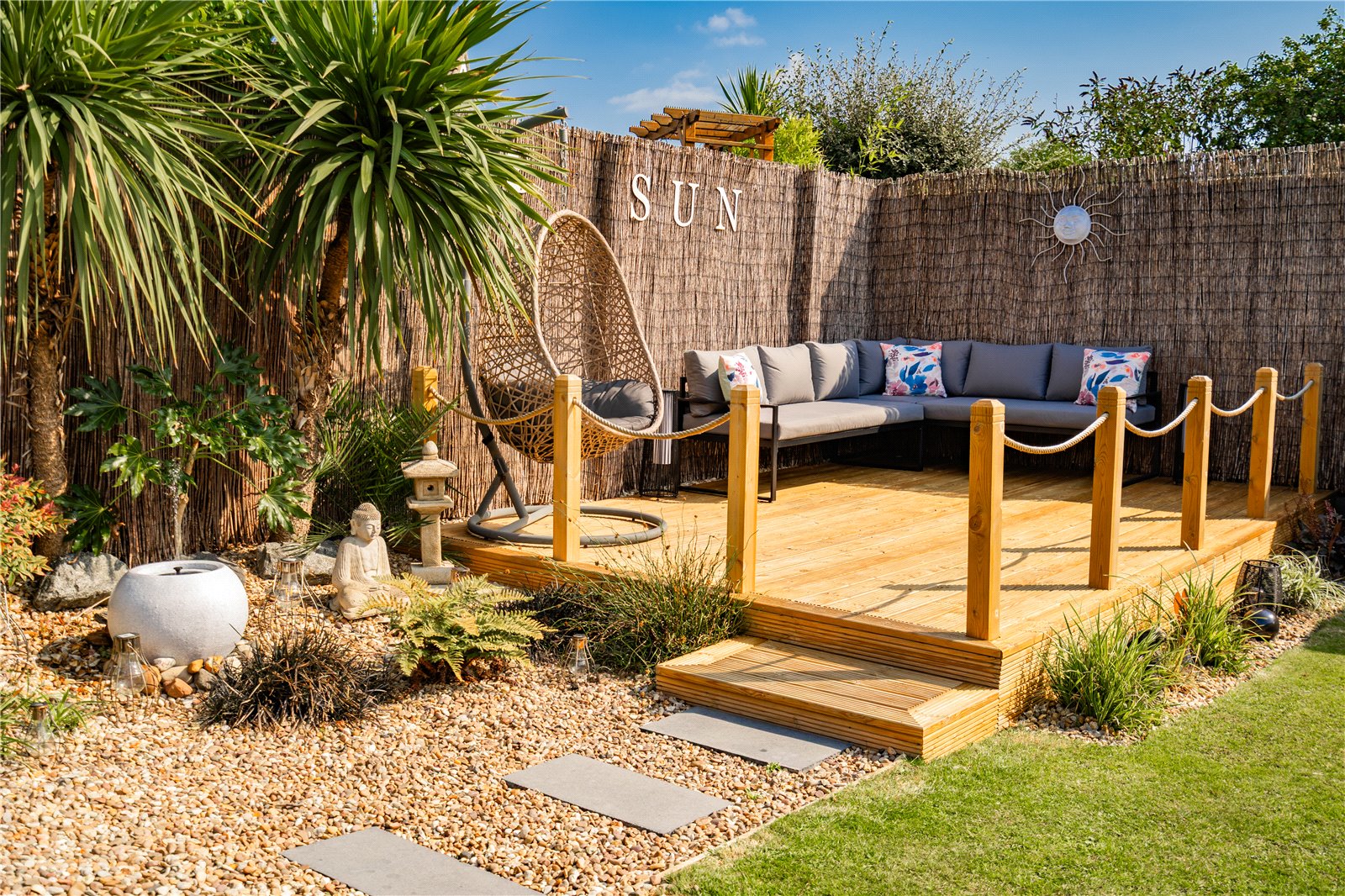 - Private, non-overlooked rear garden with lawn, decking and pebbled pathways