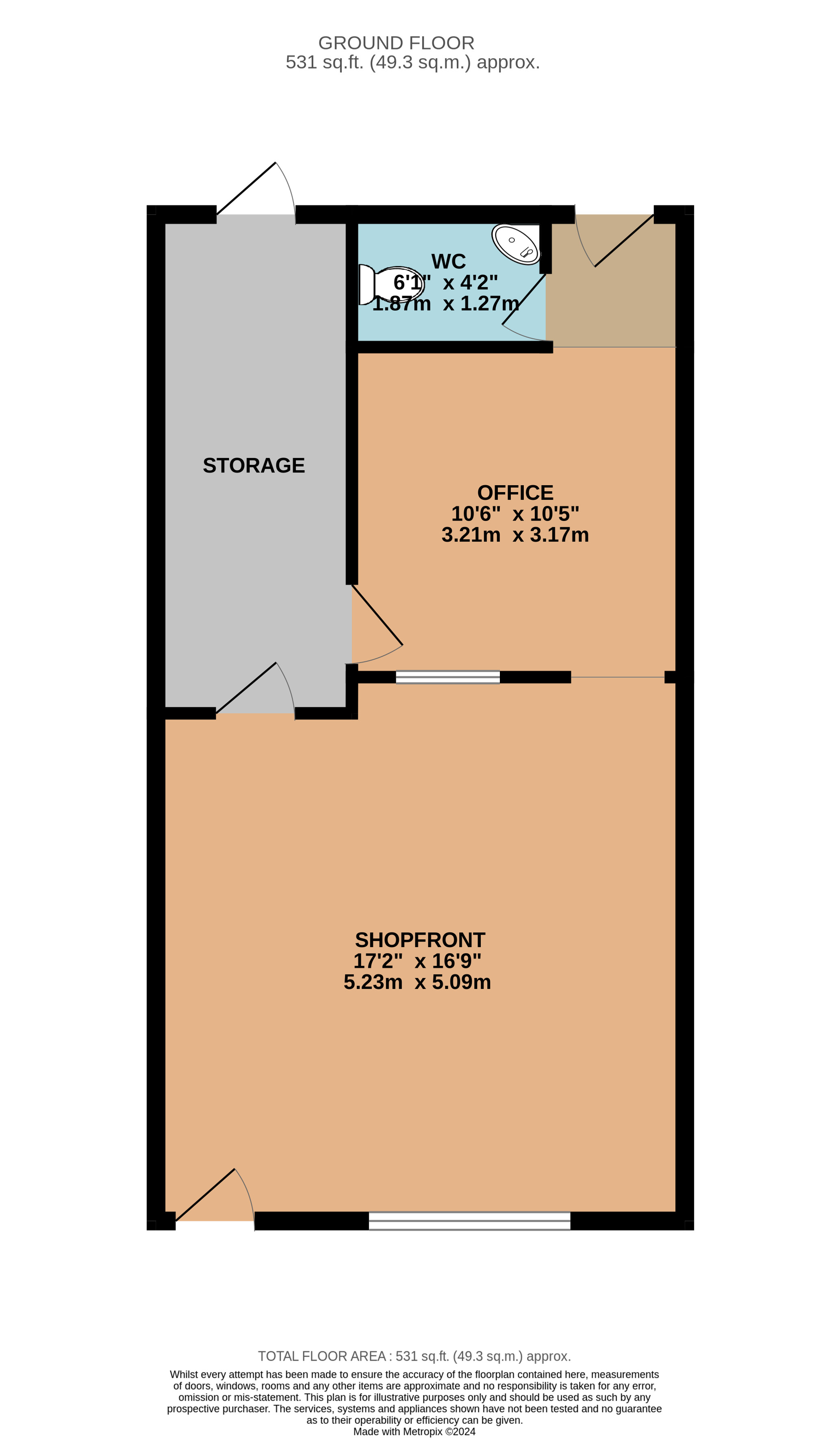 The premises briefly comprises a main retail/ office area approximately 25 sqm/ 269 sqft, a storage room, kitchenette and w.c. There are also two flats included, both of which are currently tenanted, the ground-floor flat is receiving £495 PCM and the first-floor flat £600 PCM. The commercial element is currently vacant but would be suitable for a number of different uses.