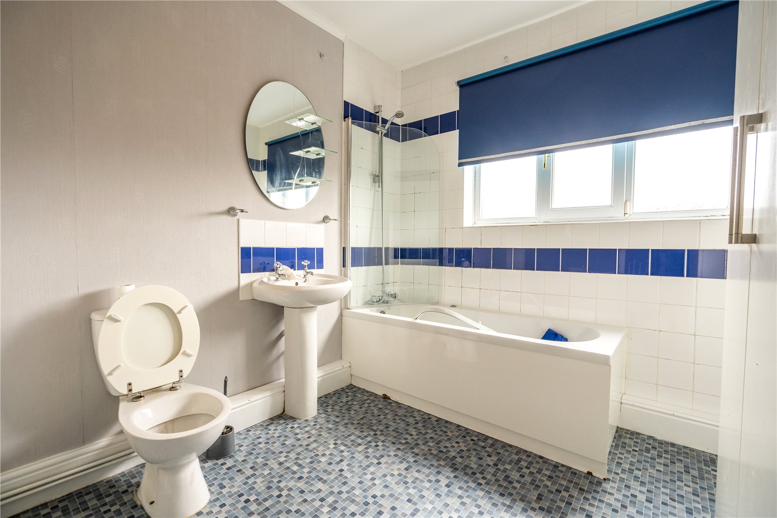 - White three-piece bathroom suite