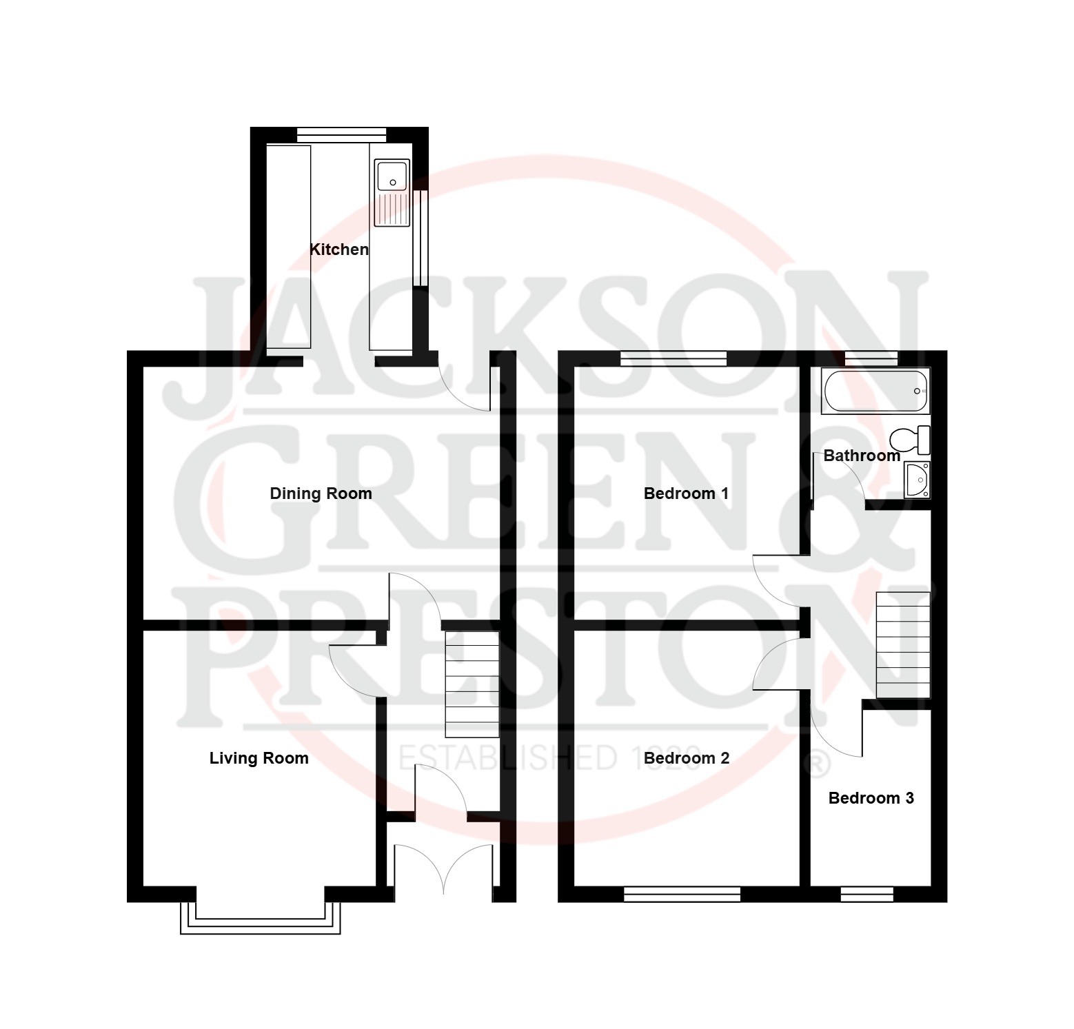 The ground floor accommodates a separate living room and dining room, as well as a kitchen, whilst the first floor houses the 3 bedrooms and the bathroom.