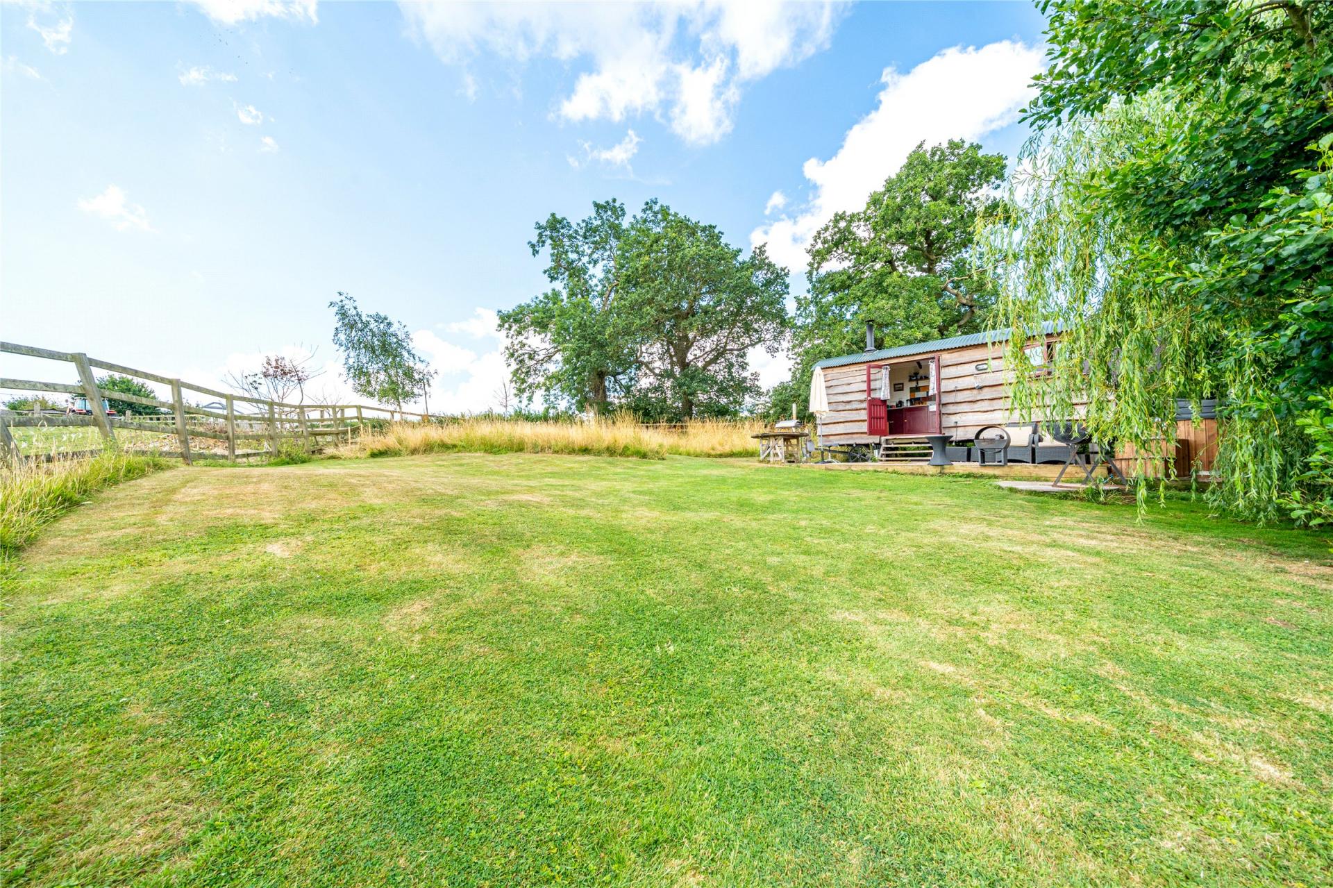 Outside, Hillview truly comes into its own. Equestrian enthusiasts will appreciate the newly re-built Andrews Bowen 60m x 20m floodlit Manege, seven stables, heated tack room, wash box and rug warming room. The estate also includes a planning-approved base for a Monarch horse walker, and a modern 18m three-bay machine and hay barn and an outhouse which has recently been run as a dog grooming parlour. Adding to the flexibility is a luxury Shepherd’s Hut nestled in the spinney, run as a thriving AirBnB (available by separate negotiation), planning permission for a second hut and a triple garage/annex with full planning permission for a one-bedroom annex – ready to be tailored to the new owner's vision.