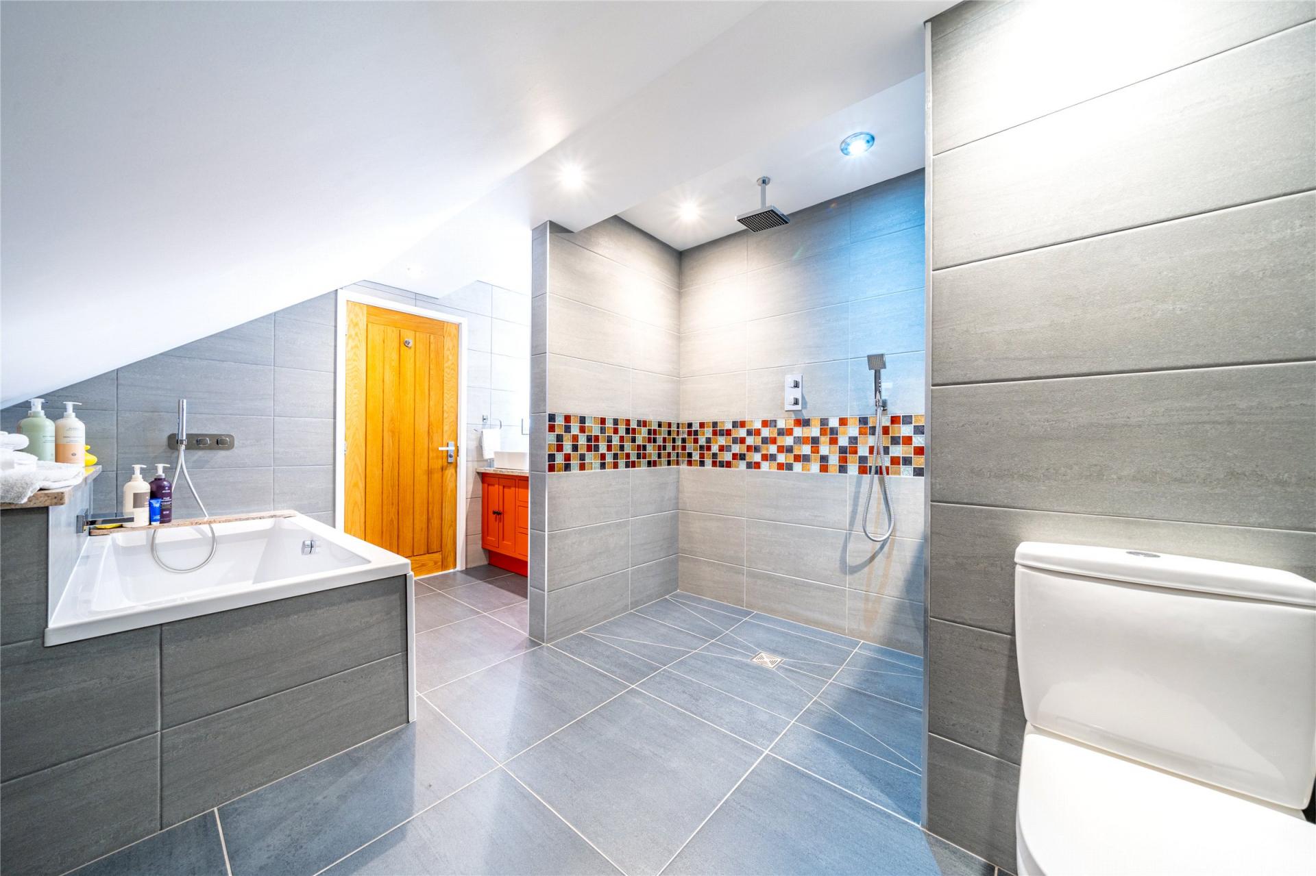 Upstairs, the property continues to impress with four double bedrooms. The principal suite is a sanctuary of comfort, complete with a luxury en-suite and separate dressing room, while the second bedroom enjoys its own en-suite and a private balcony overlooking the grounds.