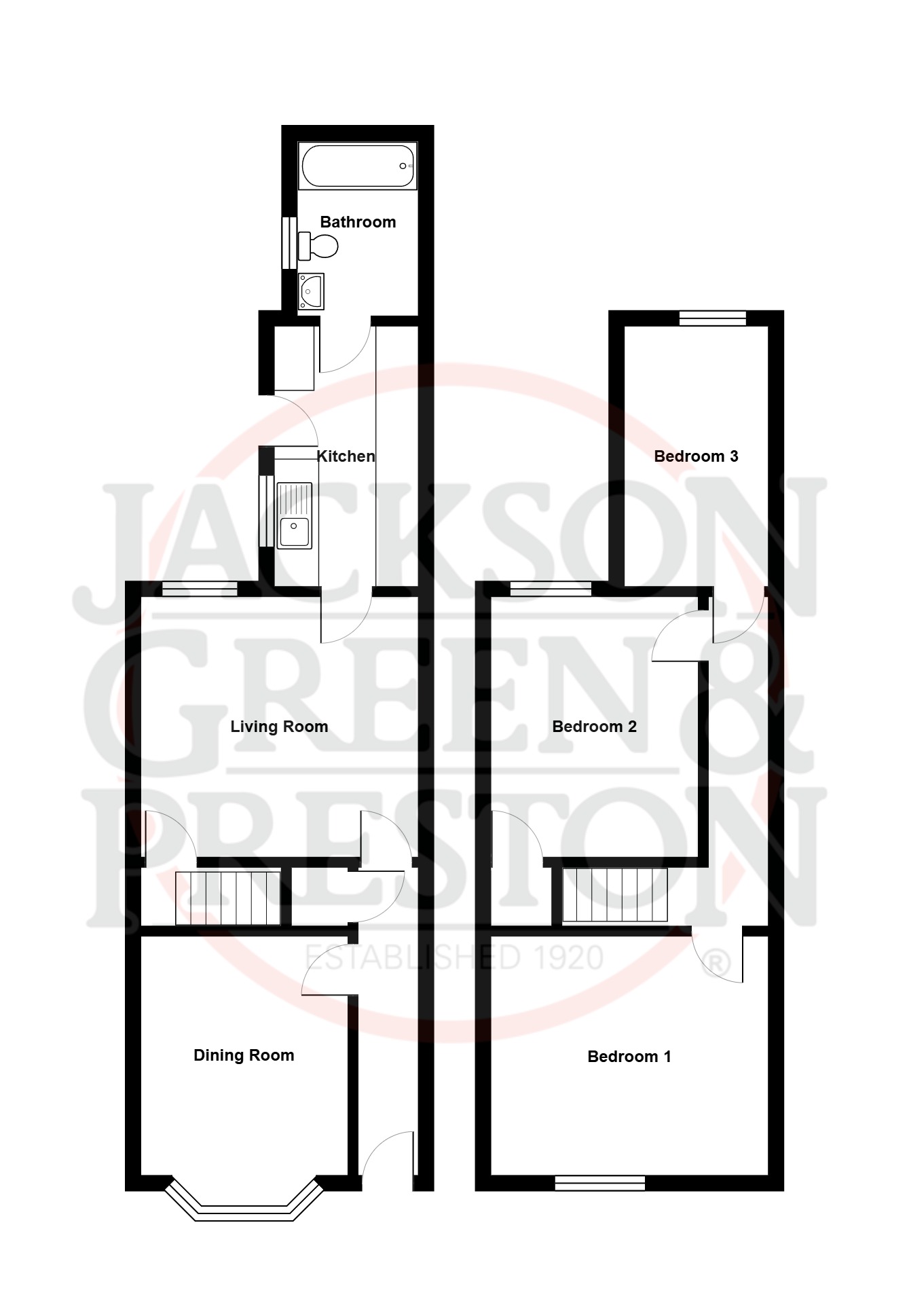 - Three first-floor bedrooms