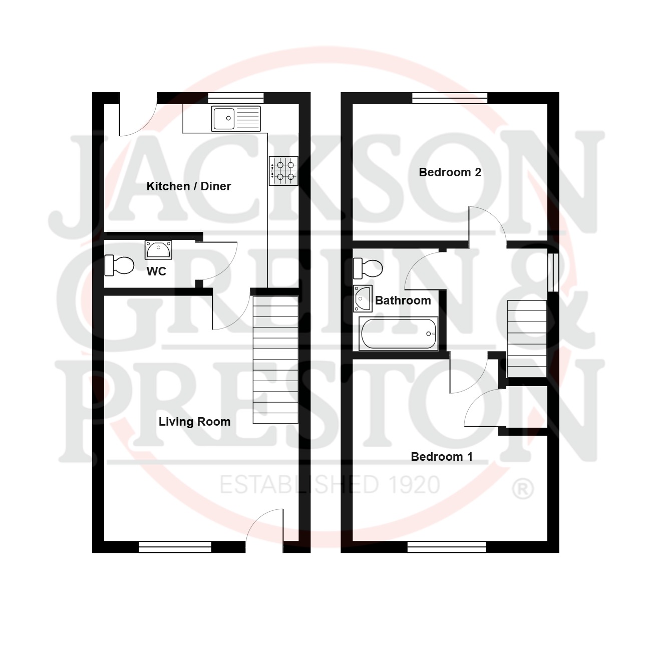 - Two bedrooms and first floor bathroom