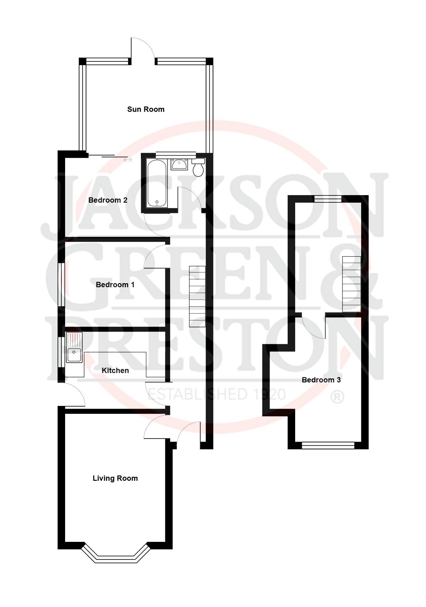 - Three bedrooms (two ground floor, one first floor)