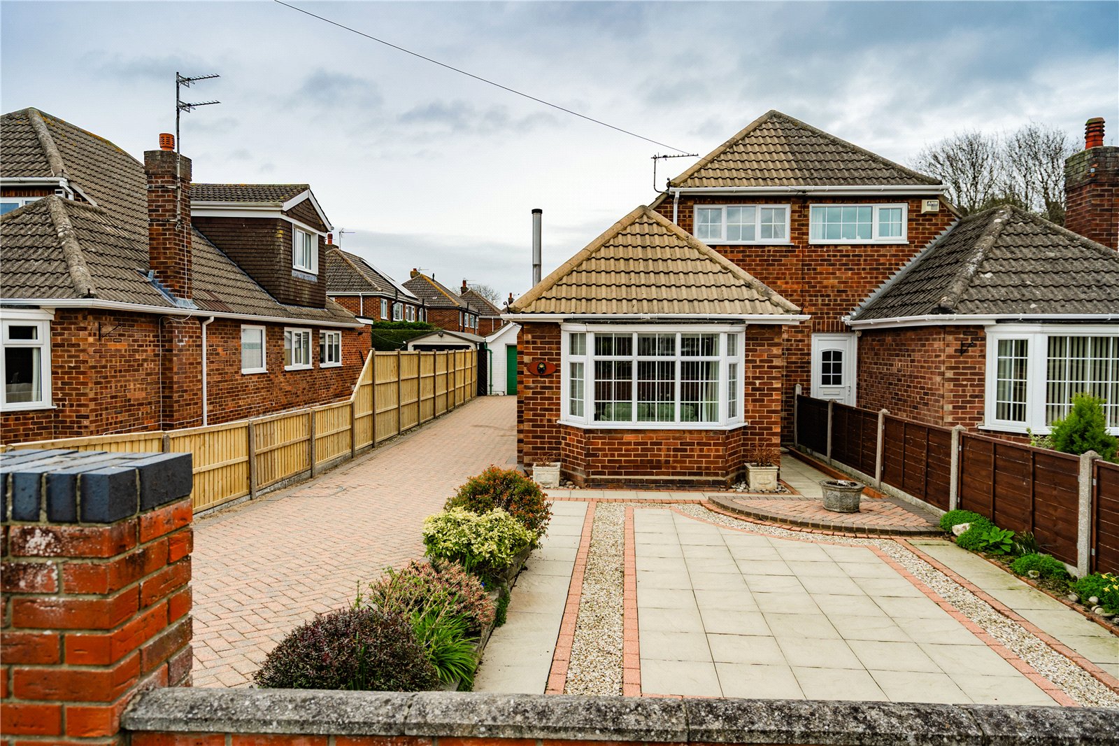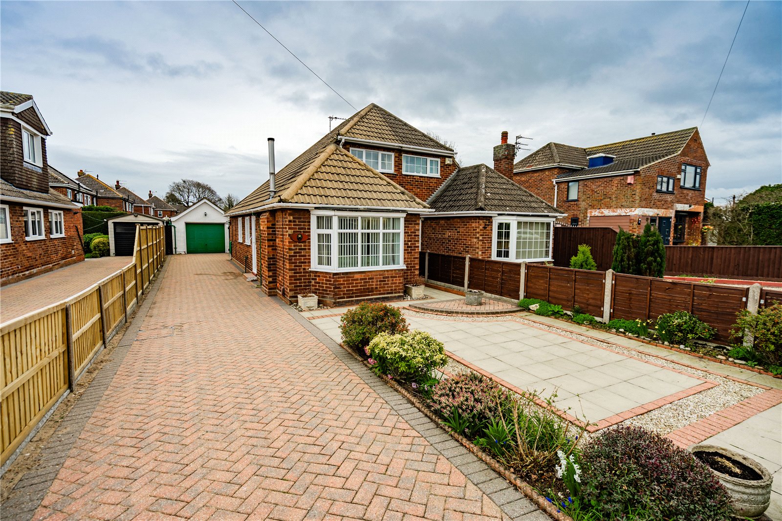 - Block paved driveway and detached garage