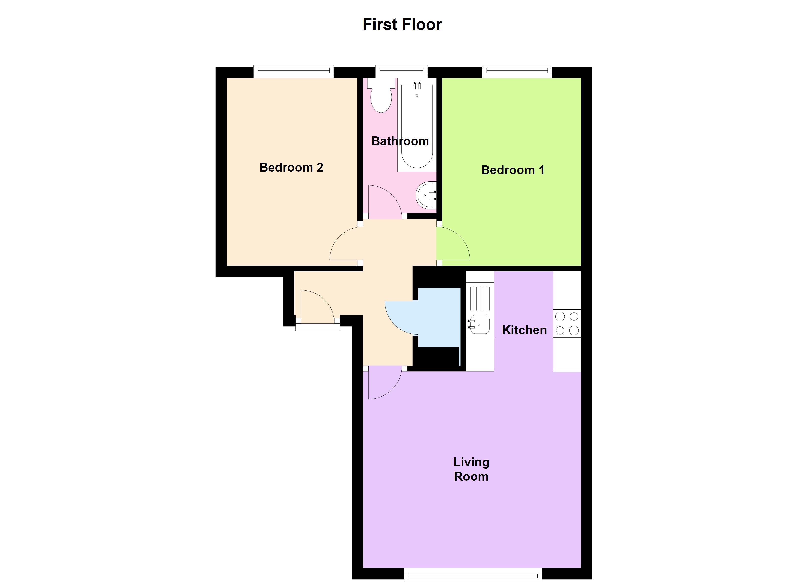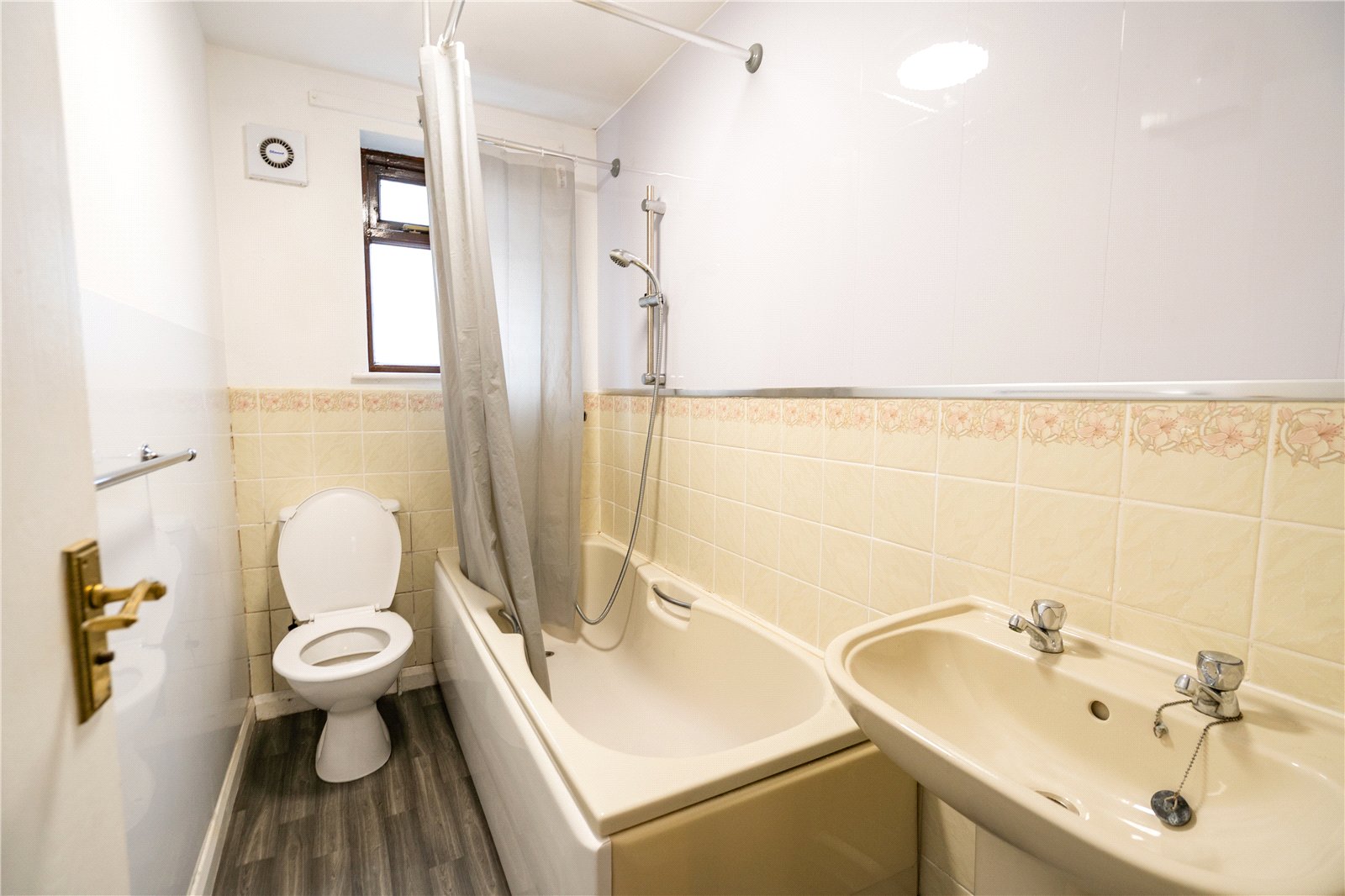 Having recently been redecorated and recarpeted (2023) and benefitting from timber framed double glazed windows and electric storage heaters it offers well planned accommodation which briefly comprises intercom entry, shared hall, stairs and landing, private entrance hall, open plan living-kitchen with range of wall and base units (oven, hob, extractor), two bedrooms and bathroom (bath, wash hand basin and w.c.).