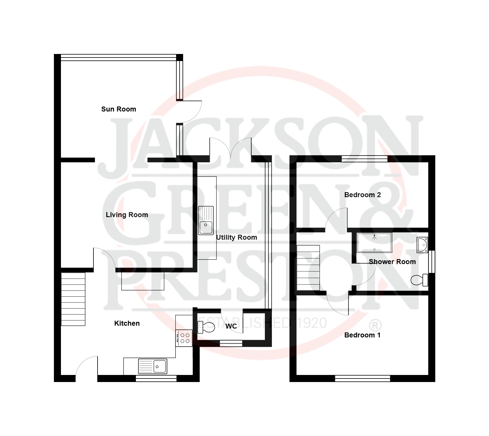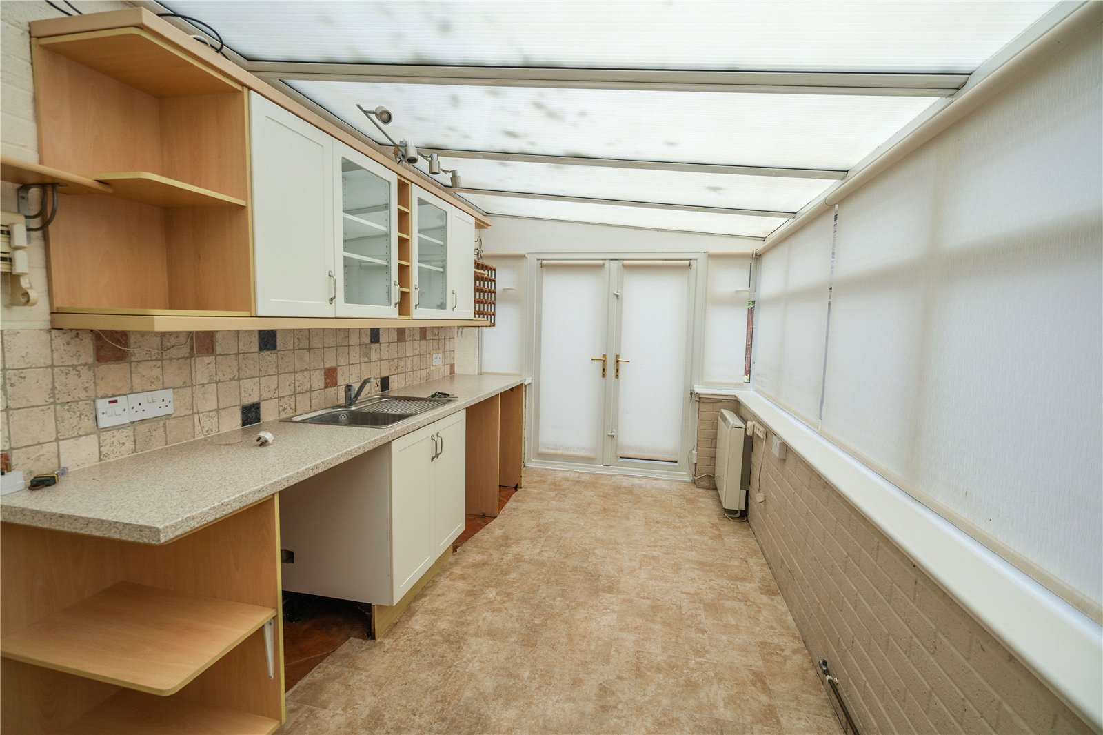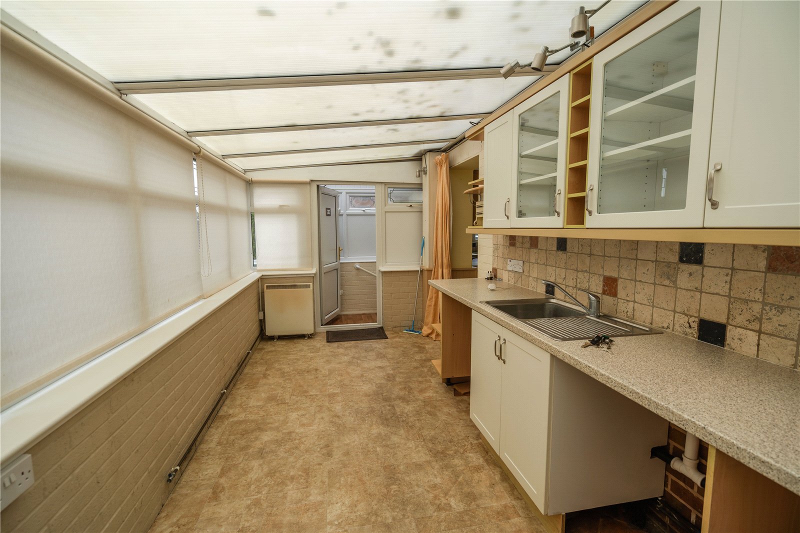 - Living room, kitchen, sun room and utility