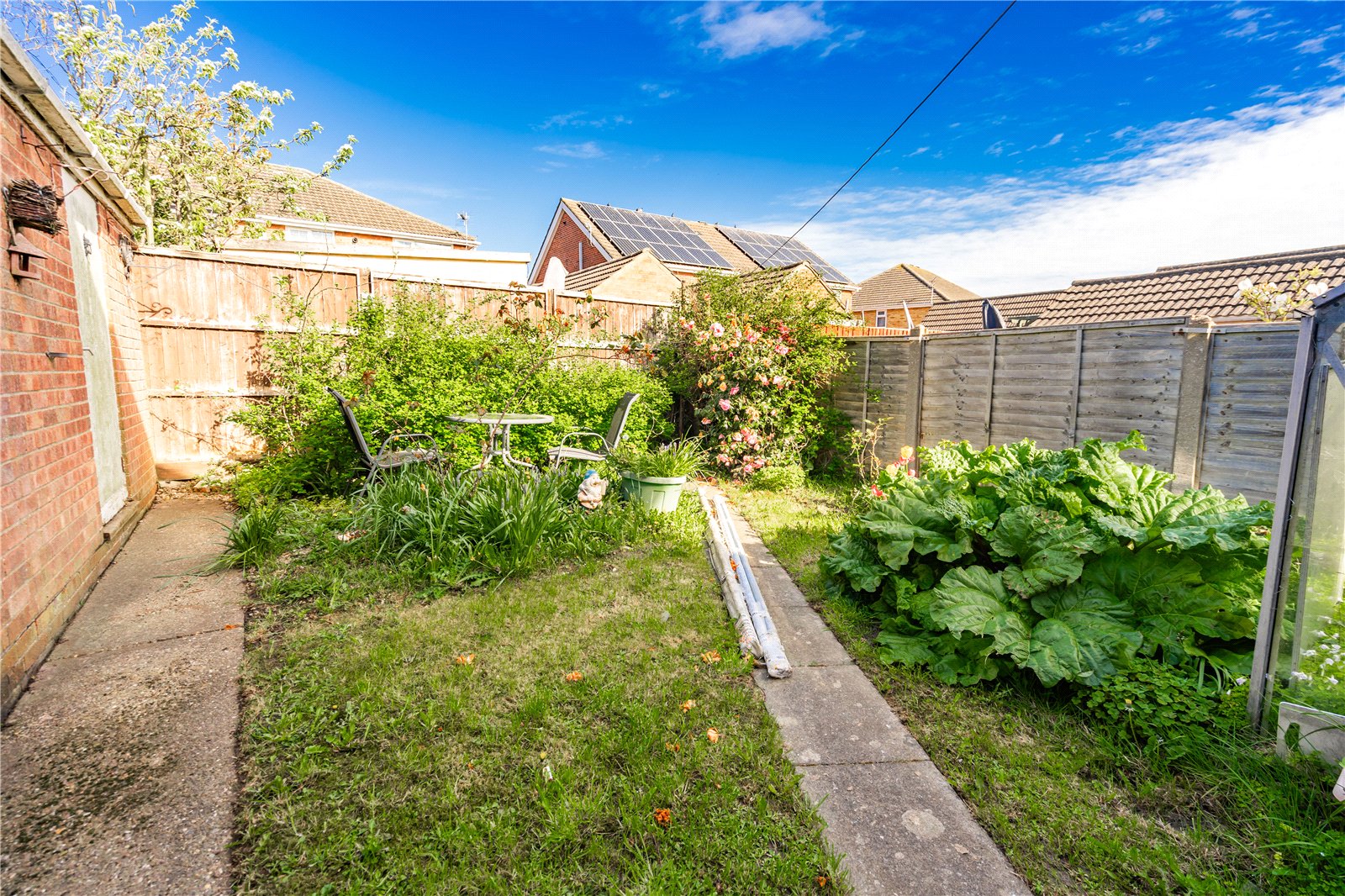 - Well-proportioned rear garden mainly laid to lawn