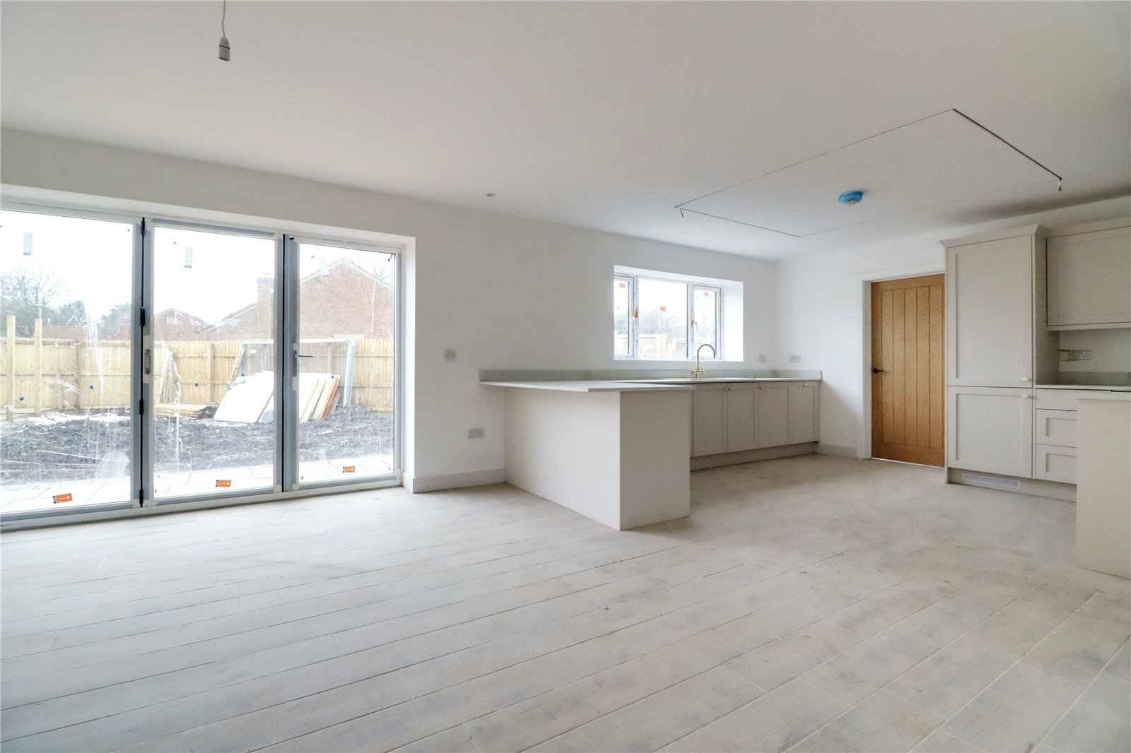 The accommodation enjoys an inviting central reception hallway, front facing sitting room/bedroom 4, a large open plan living area has bi-folding doors leading into the private garden, a seamless tranistion from the living room leads to a well appointed luxury fitted kitchen that is equipt with quality appliances and benefits from a matching utility room, cloakroom. The first floor features a stunning landing that leads to a luxurious family bathroom and 3 bedrooms with a master en-suite shower room.