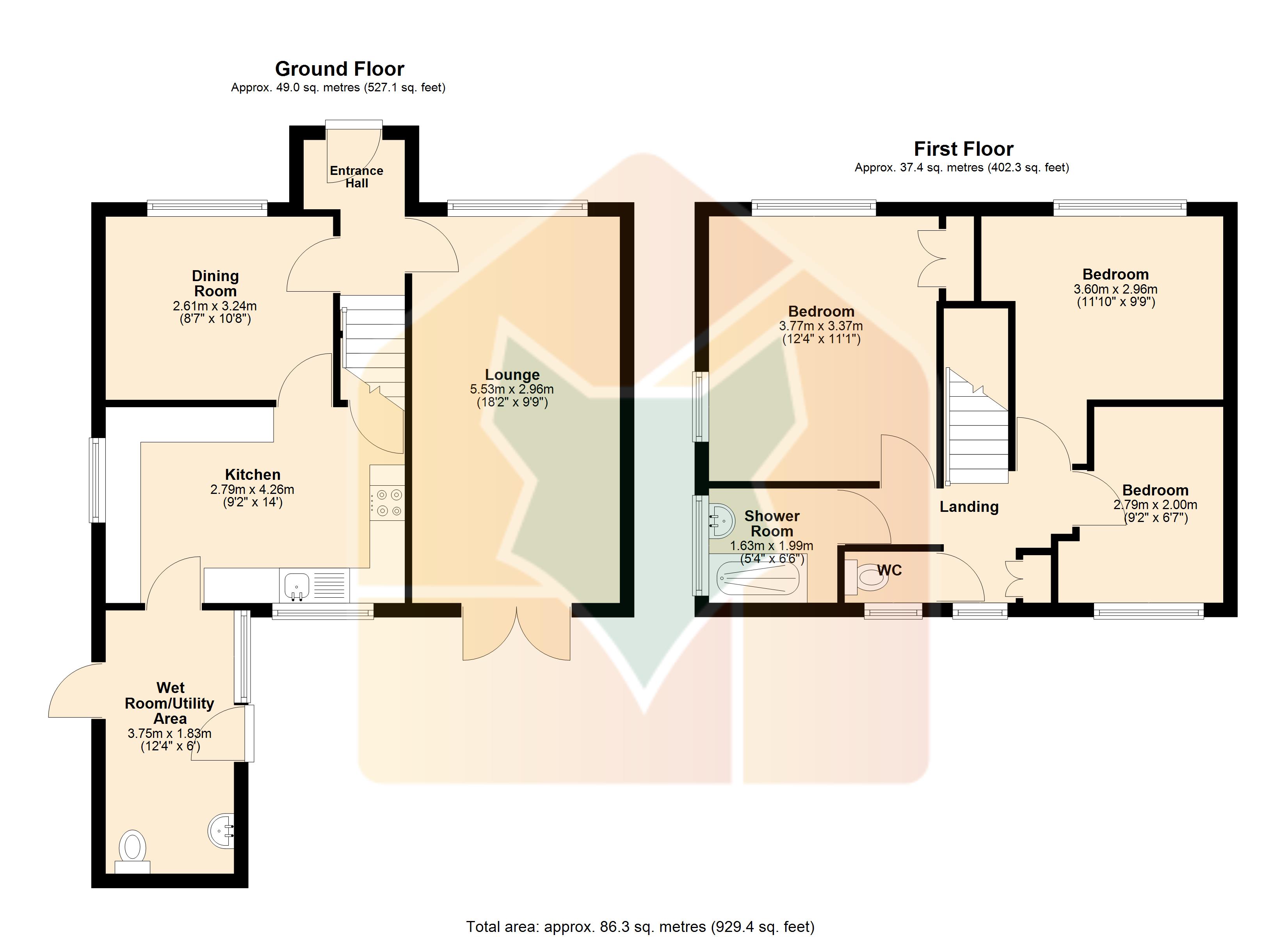Upstairs, the property boasts three well-proportioned bedrooms, complemented by a contemporary shower room and a stylish separate WC.