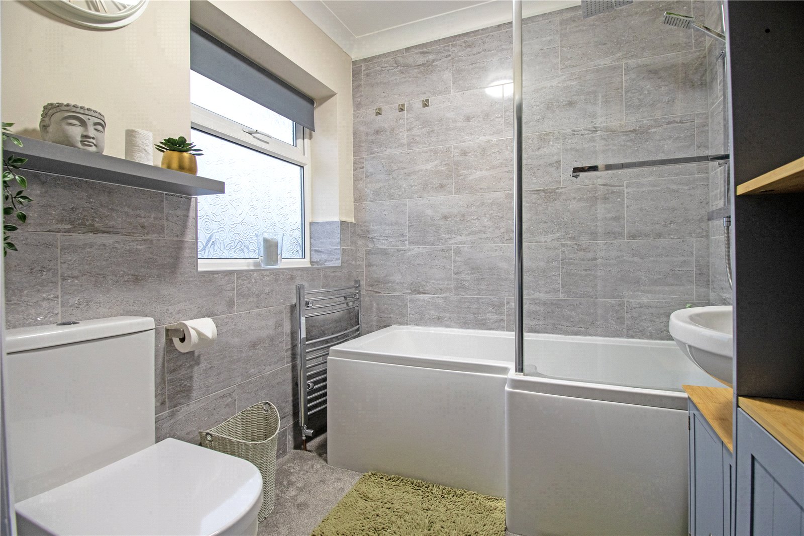 To the first floor are three well-proportioned bedrooms, all offering comfortable accommodation, serviced by a sleek and modern bathroom suite, also installed around four years ago, providing a stylish and practical space for the household.