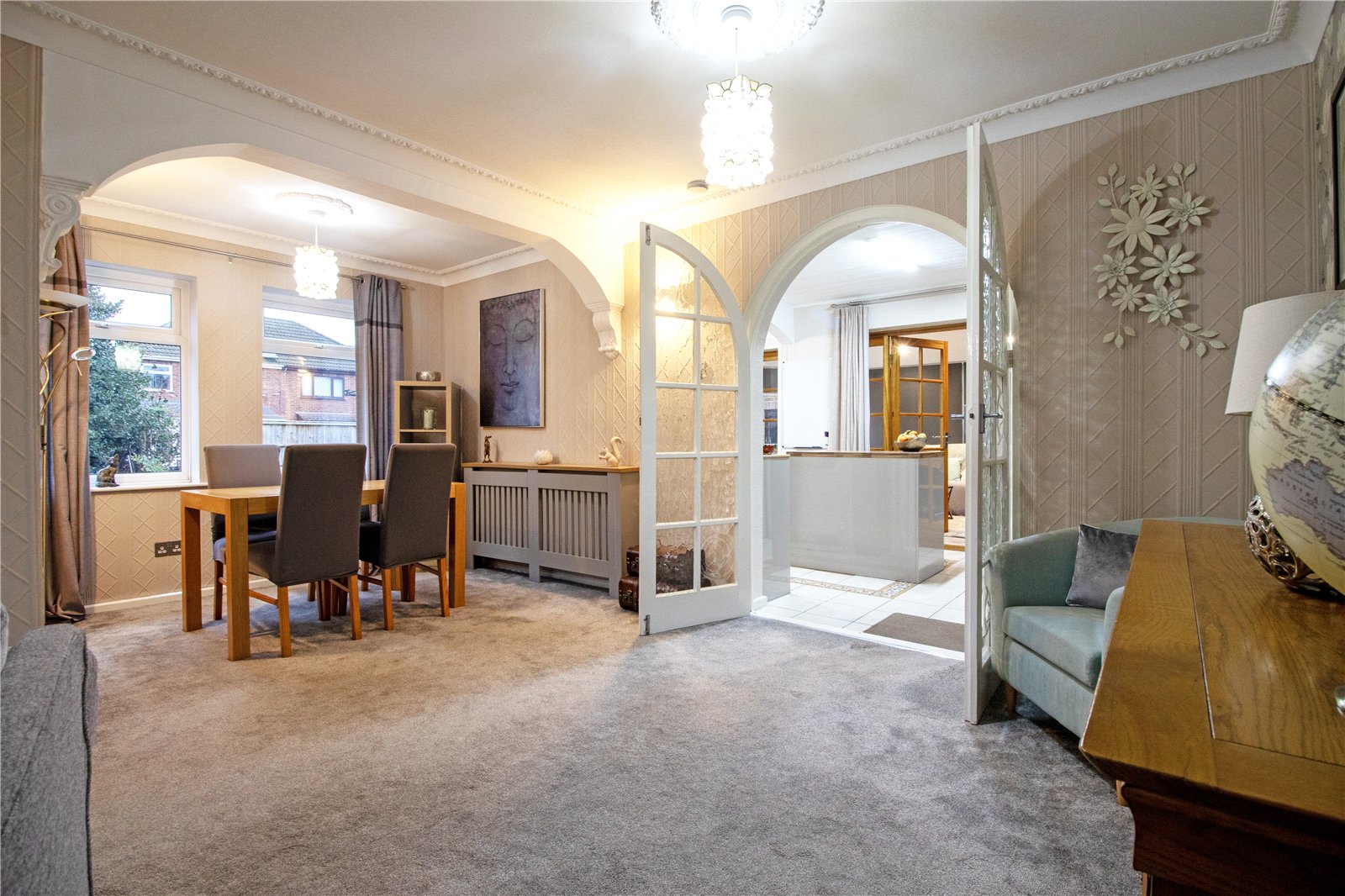 Internally, the accommodation is both stylish and versatile, beginning with a welcoming entrance hall leading through to a spacious and light-filled lounge diner ? ideal for both everyday family living and entertaining. The heart of the home is the contemporary Wren-fitted kitchen, installed approximately four years ago, which offers modern cabinetry, quality finishes and ample workspace. This flows seamlessly into a bright and airy garden room, creating an additional reception space that overlooks the rear garden. A ground floor W.C. completes the downstairs layout.
