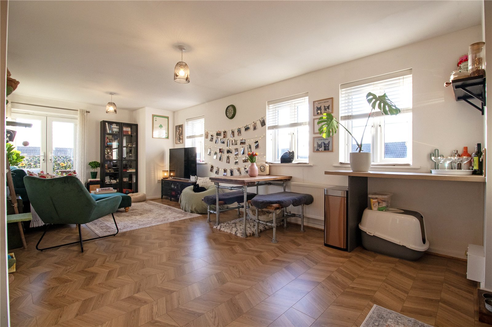 Internally, the apartment opens into a welcoming entrance hall leading through to a breathtaking open-plan living kitchen, beautifully enhanced by an abundance of natural light streaming in through multiple windows. The contemporary fitted kitchen is finished with style and sophistication and benefits from integrated appliances, including a fridge freezer and washing machine, making the space both practical and visually striking.
