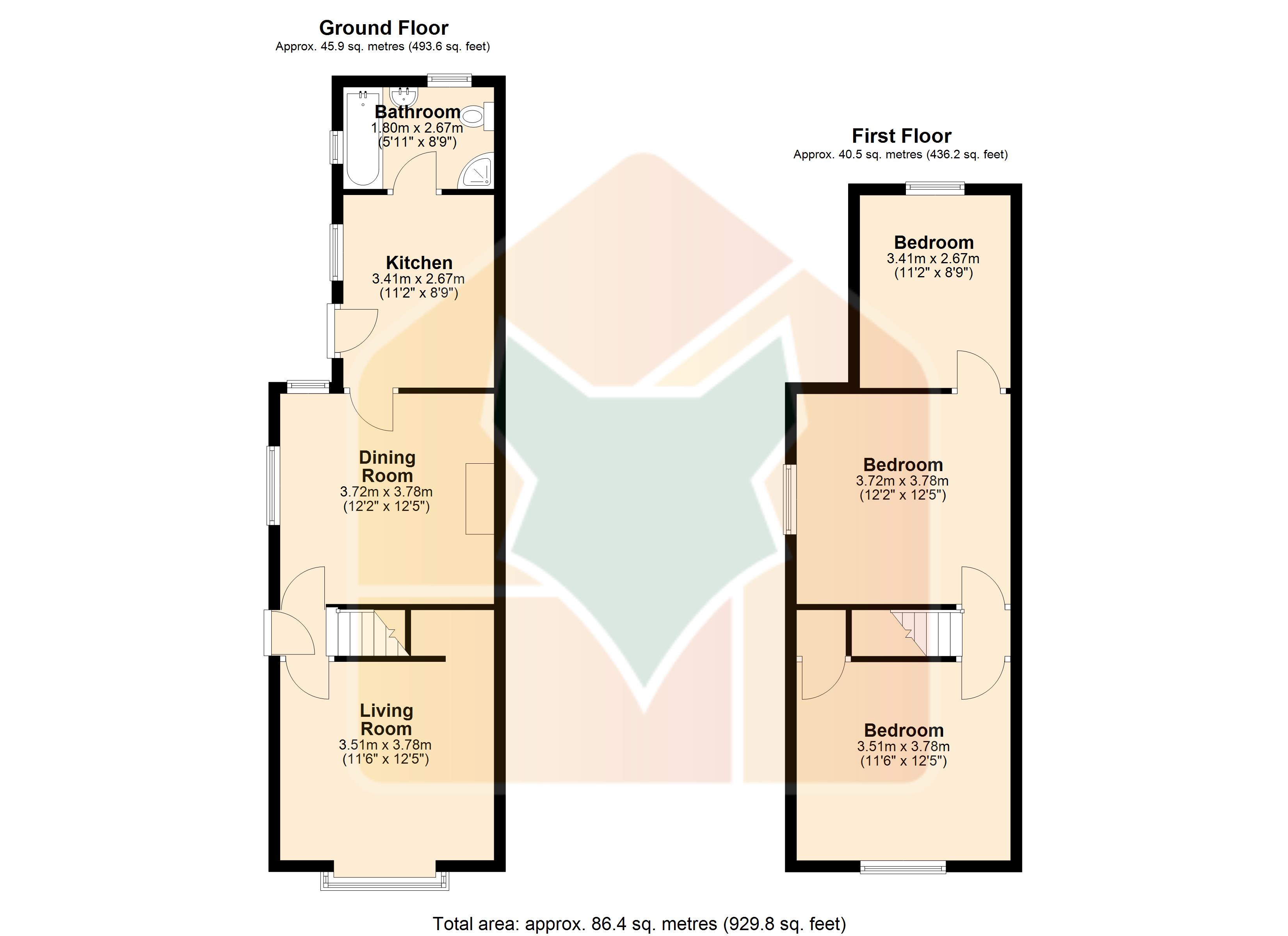 Front Double Bedroom 2 11'11" x 12'5" (3.63m x 3.78m).