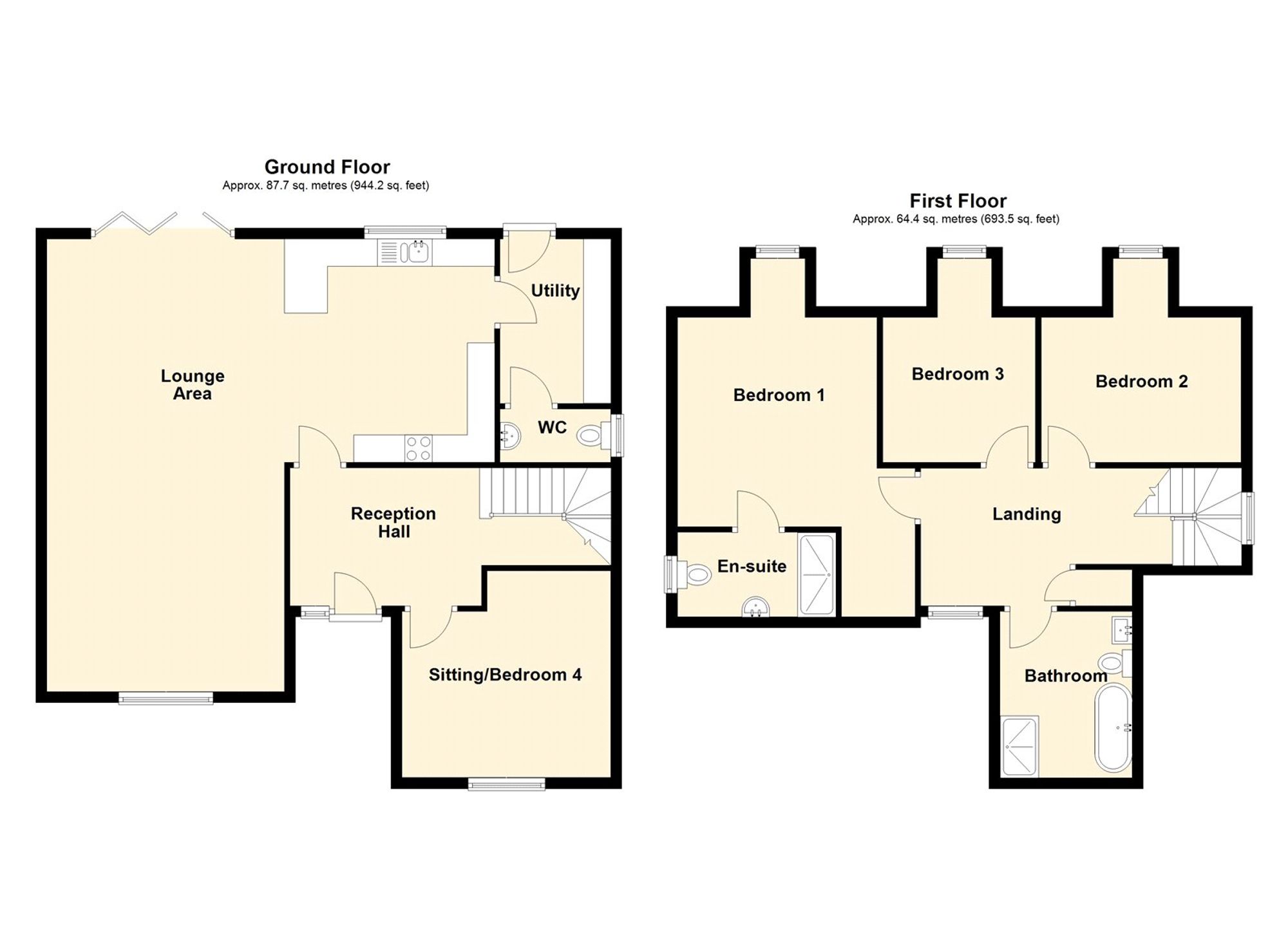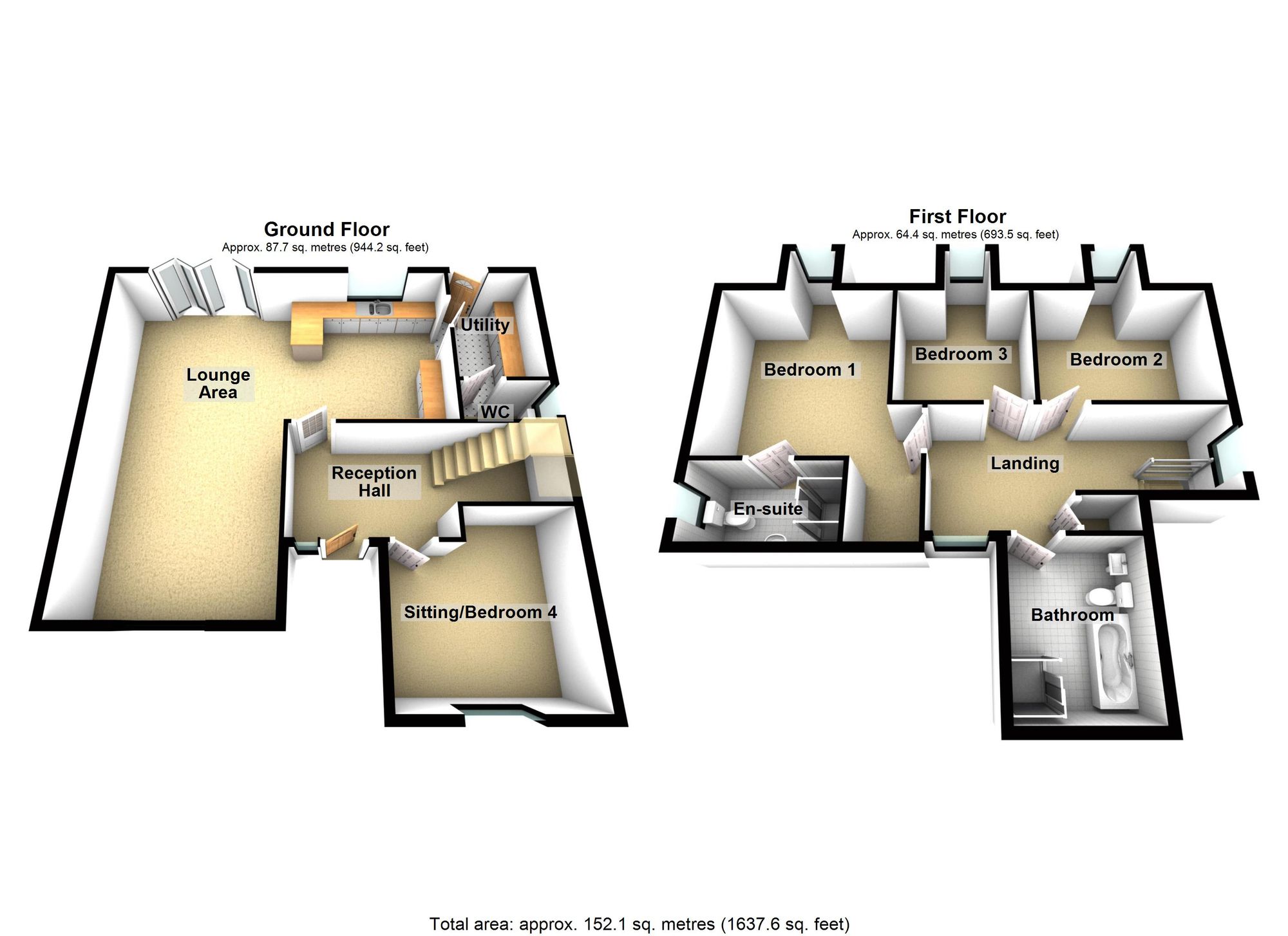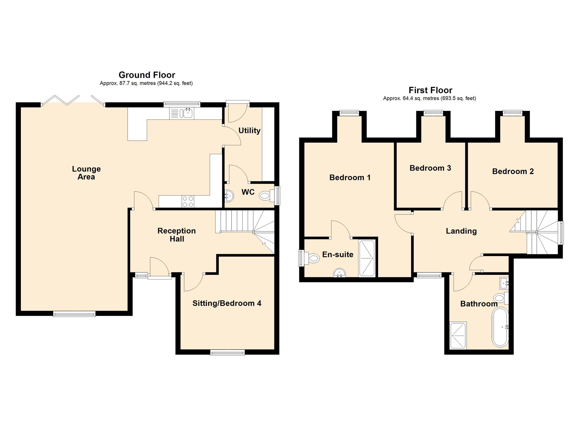 The property is entered via an inviting central reception hallway, beautifully finished with a contemporary glass balustrade staircase, creating an immediate sense of light and space. A front-facing sitting room provides excellent flexibility and can also serve as a fourth bedroom or home office.