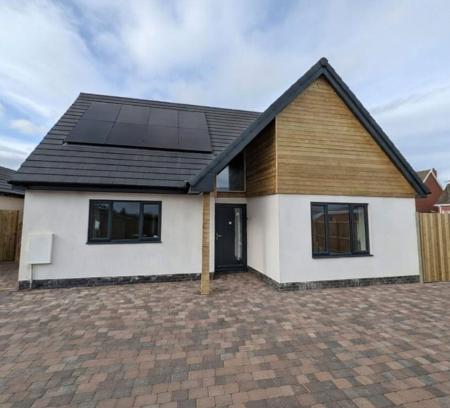 Constructed using high-quality materials with sustainability and long-term efficiency in mind, the home benefits from full double glazing, energy-efficient air source heating, underfloor heating to the ground floor and integrated solar panels.